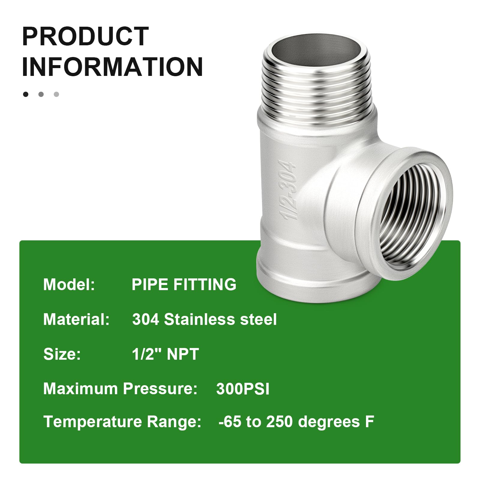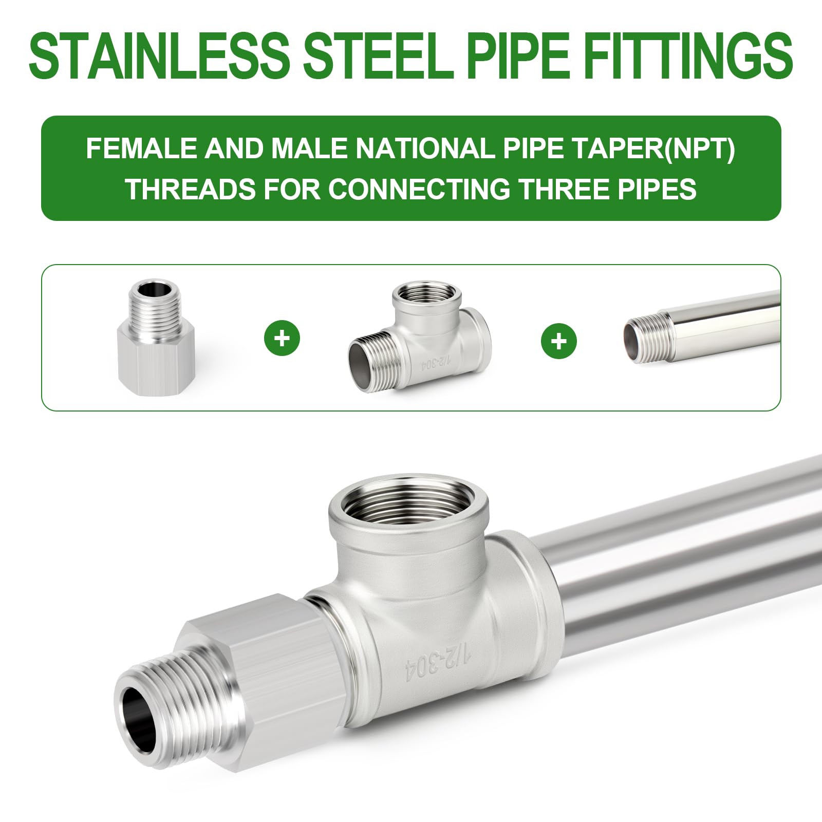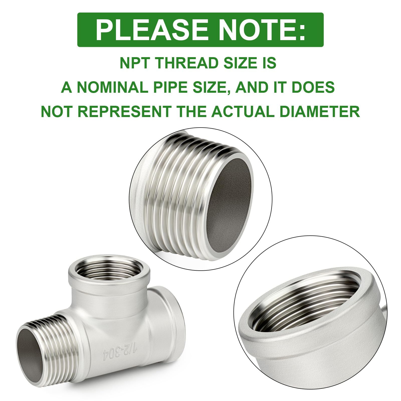 [ Product Type ] Tee (1/2" NPT Female x 1/2" NPT Female x 1/2" NPT Male), used for industrial connection of pipes or fittings with different end types, diameters or materials,NPT thread size does not actual diameter, it is only nominal pipe size,Tee with three openings for connecting and branching three pipes.