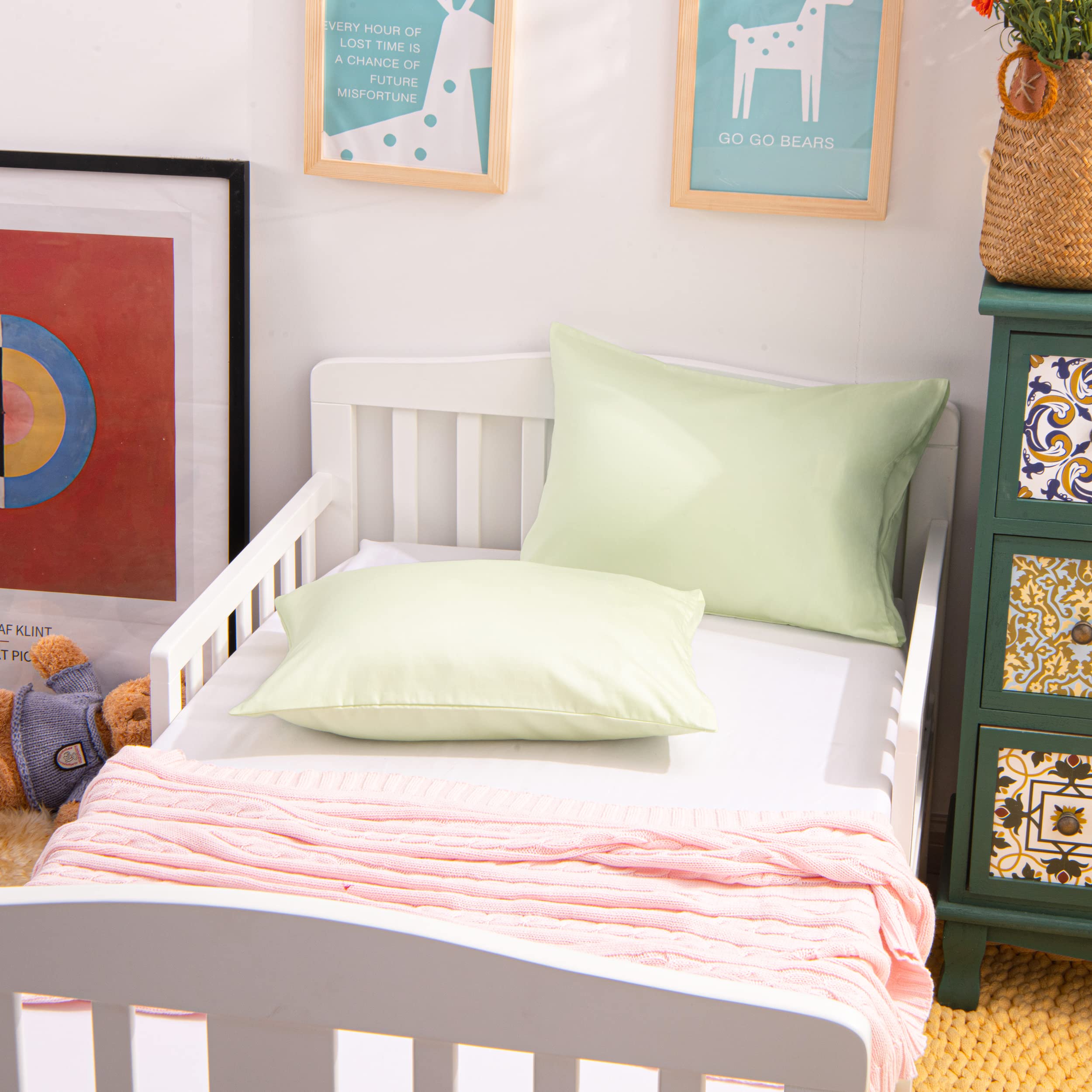 Colorful and versatile toddler pillowcases: These toddler pillowcases are available in a variety of colors. The soft, simple and silky baby pillowcase covers and protects your baby's pillow from getting dirty, and can also be used as a crib cover to decorate your crib. A good night's sleep is a newborn's top priority. You can also take a travel-size pillowcase with you when you travel. It can be used throughout the year.