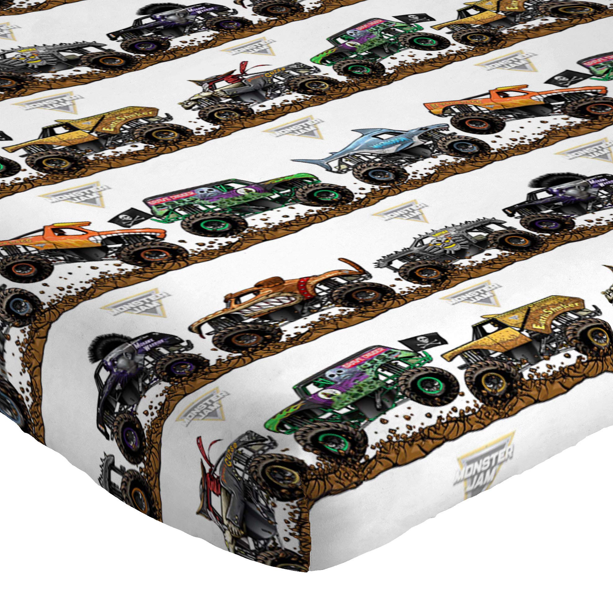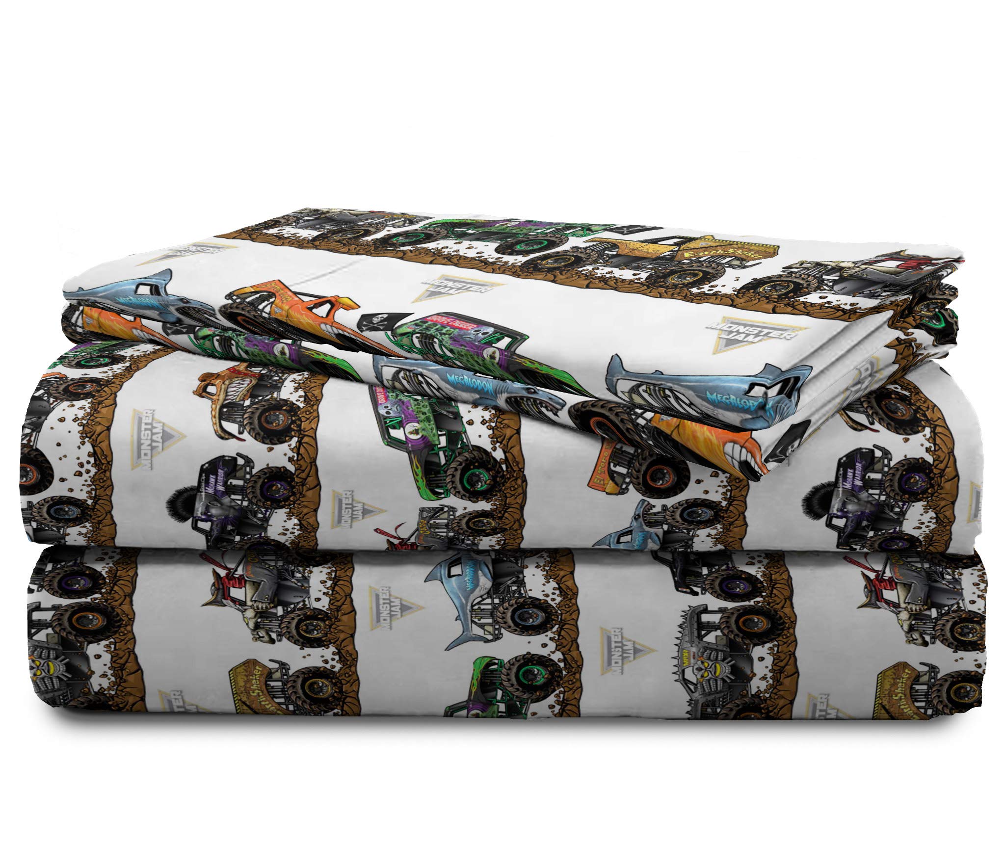 OFFICIALLY LICENSED: Bring the high-octane thrills of Monster Jam to bedtime! This vibrant sheet set features fan-favorite trucks like Grave Digger and Megalodon. A must-have for young monster truck fans.
