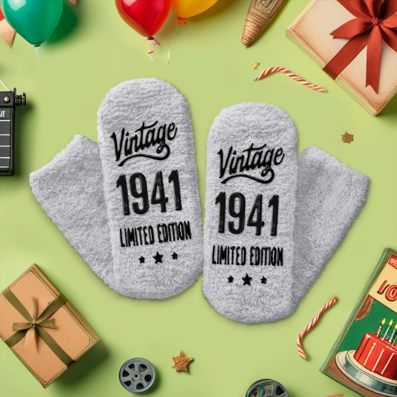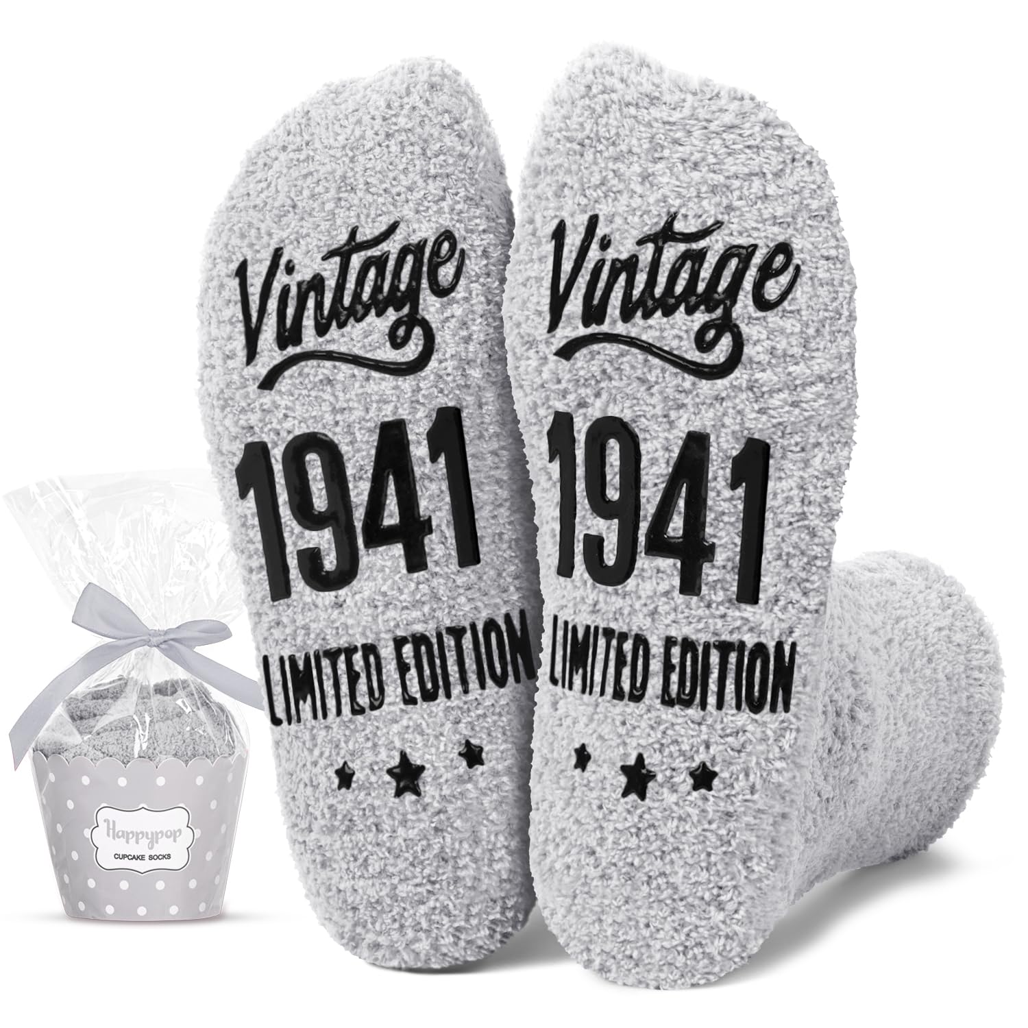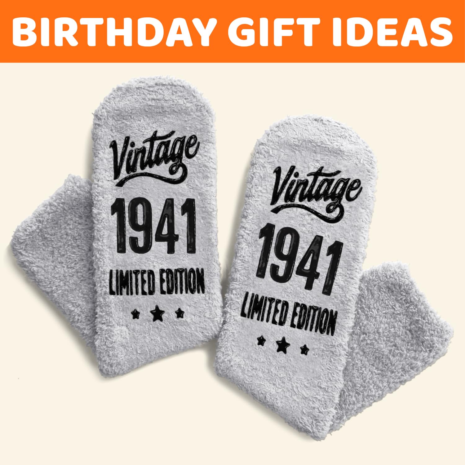 1941 BIRTHDAY GIFTS: Give him this perfect 84th birthday gift to remind him of how great he is. His smile will get even wider when he reads the words "Vintage 1941 LIMITED EDITION." Practical, emotional, and humorous, this pair of birthday socks makes a great gift if your friend or family member was born in 1941!