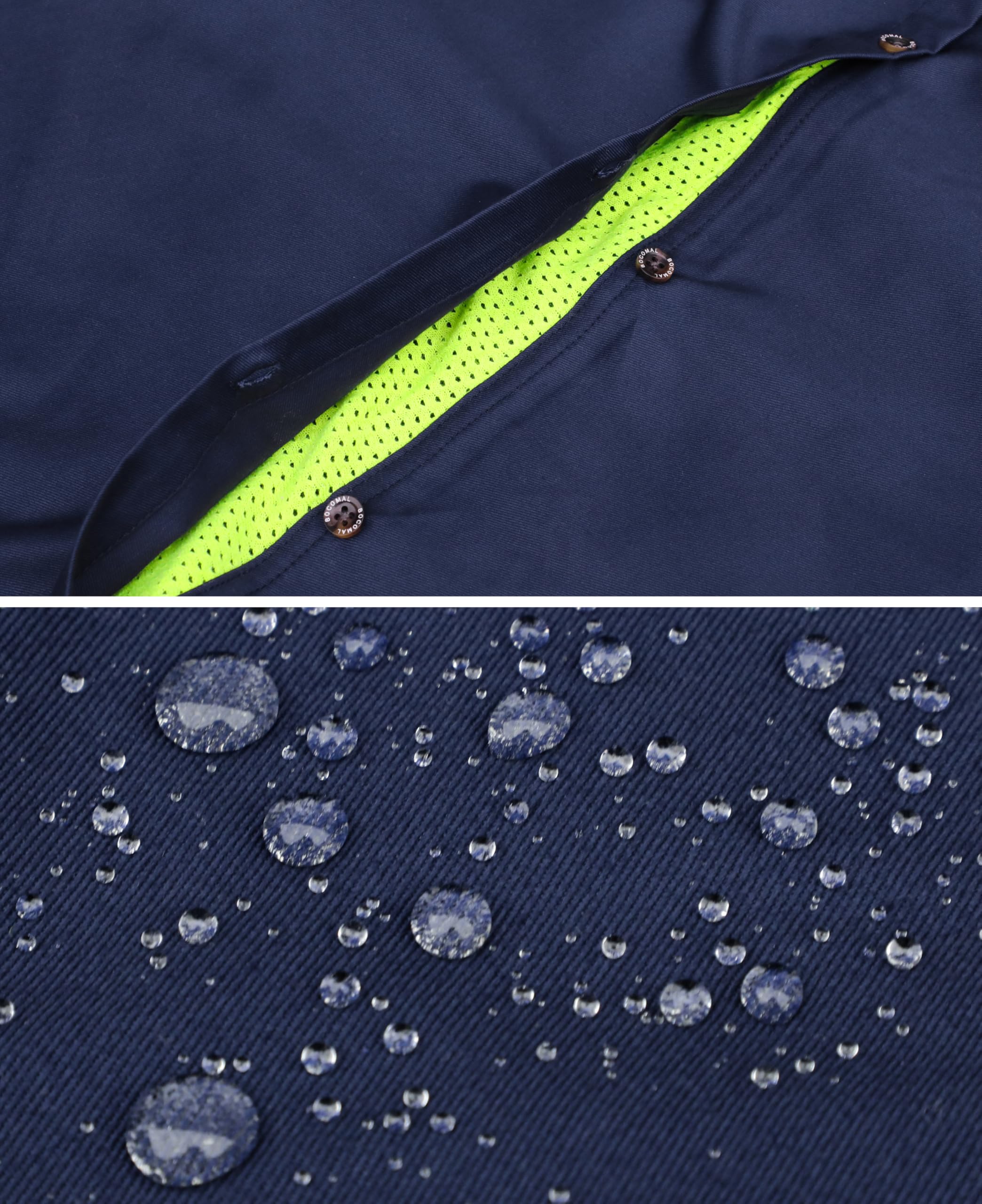 Water and Oil Repellent Finish 6.5oz lightweight cotton twill FR treated,Flame resistant Modacrylic/Cotton Blend mesh.FR buttons,FR aramid sewing threads! clearly FR tag on pocket.Prewashed Preshrunk and Wrinkle-Free.