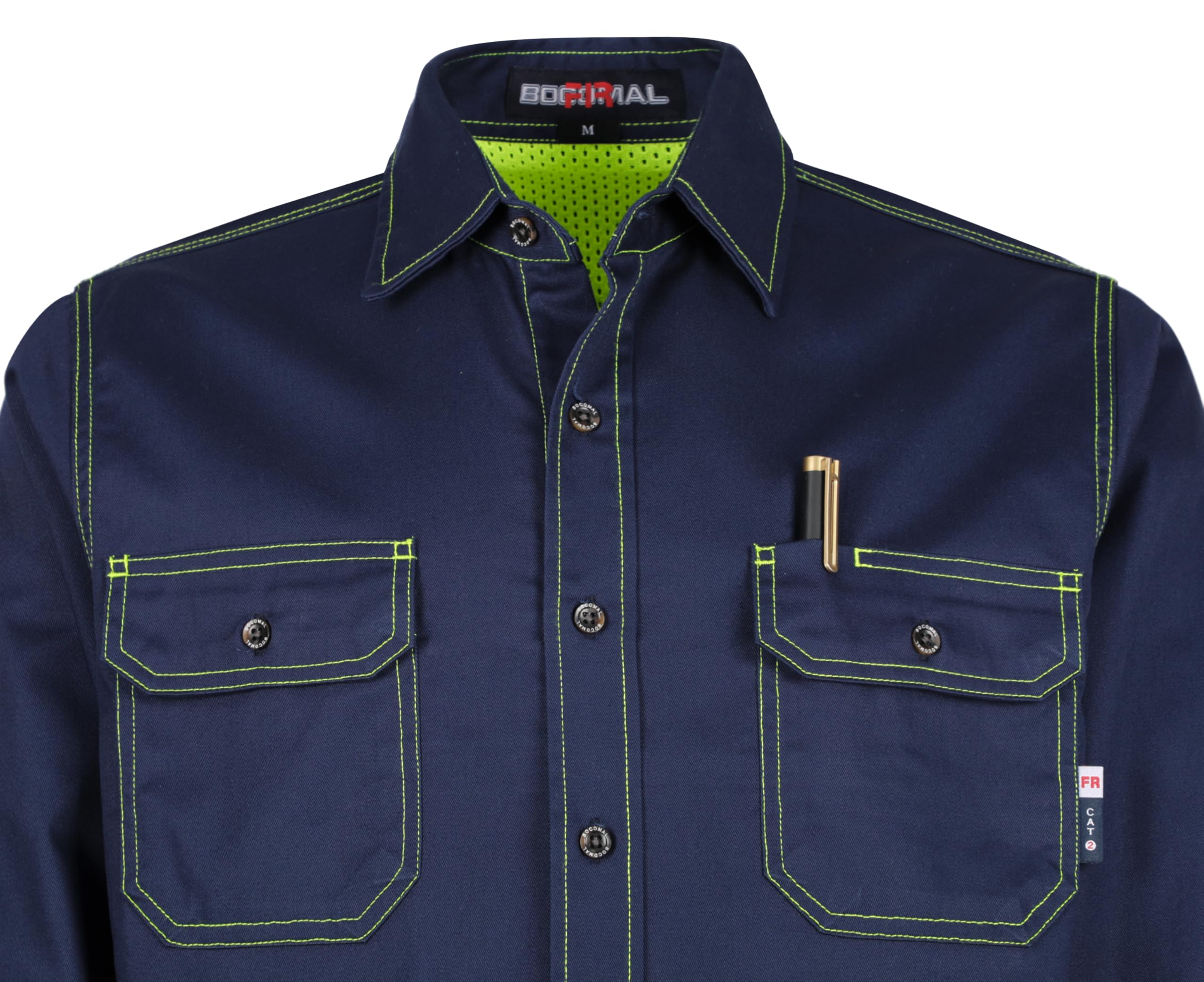 Our work shirt has the appropriate level of protective gear and stays enforced up to numerous washes. You can wear and wash it over and over again for up to 100 times before FR still works.(NFPA2112,ASTM F1506,CAT II)