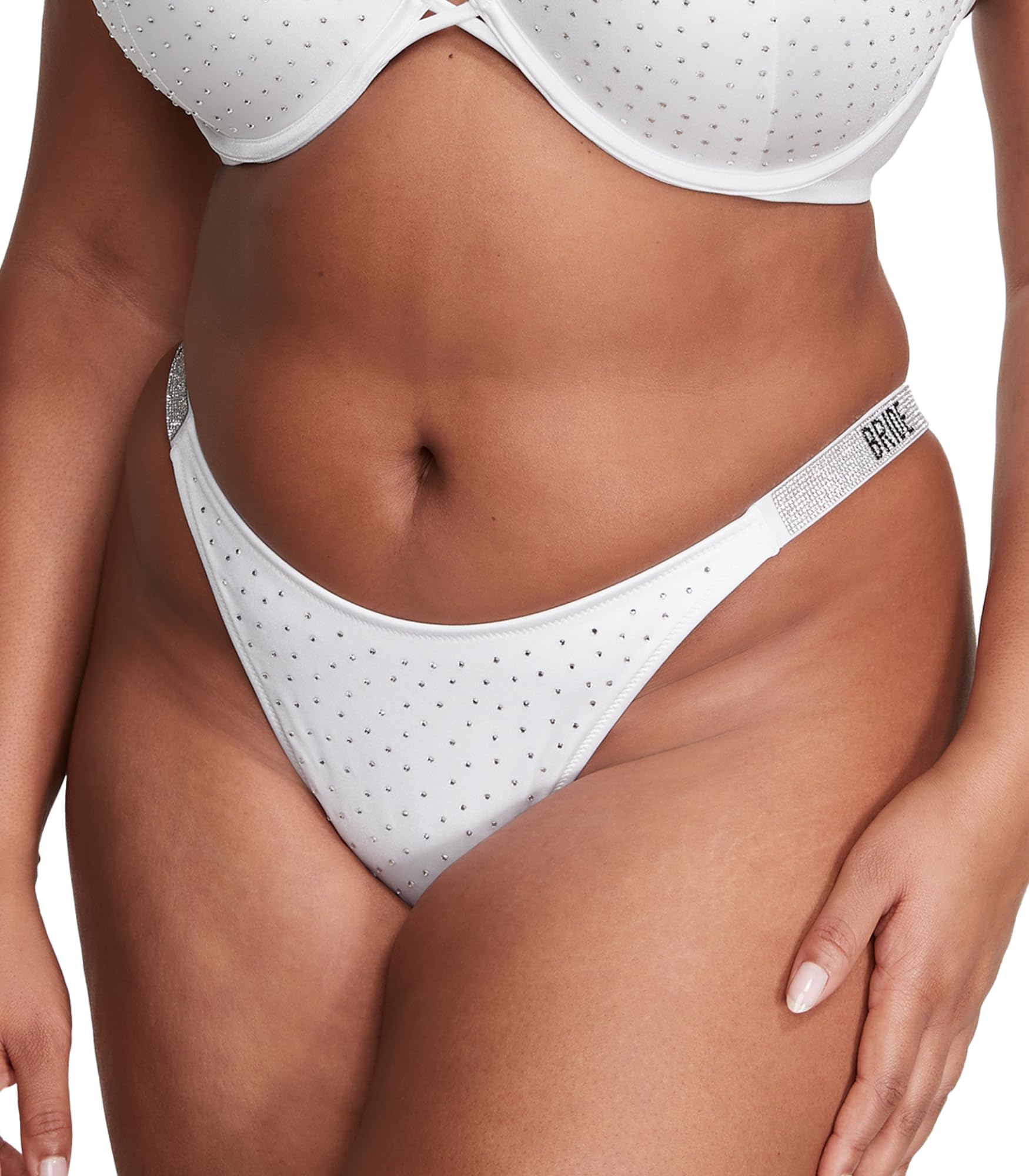 This barely there Thong gets dressed up this season with our updated logo shine straps for a dazzling finish.
