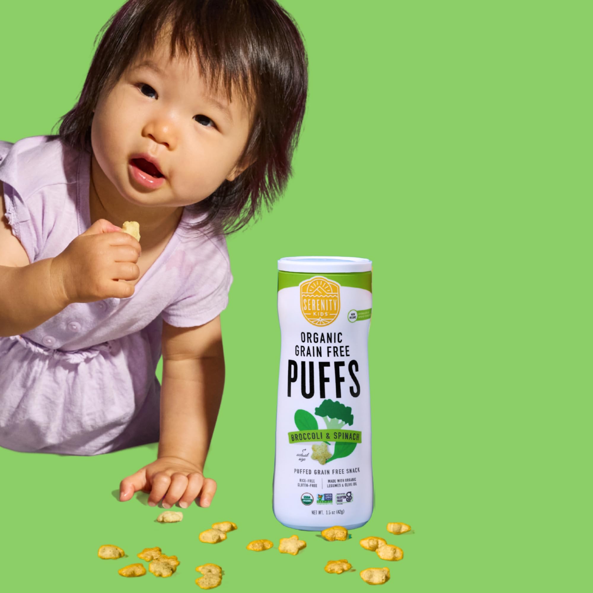 Snack-Time Game Changer: Serenity Kids takes your baby snack puffs to the next level with a USDA Organic, grain-free mix. It's time to revolutionize toddler snacks with ingredients you can trust and flavors they love