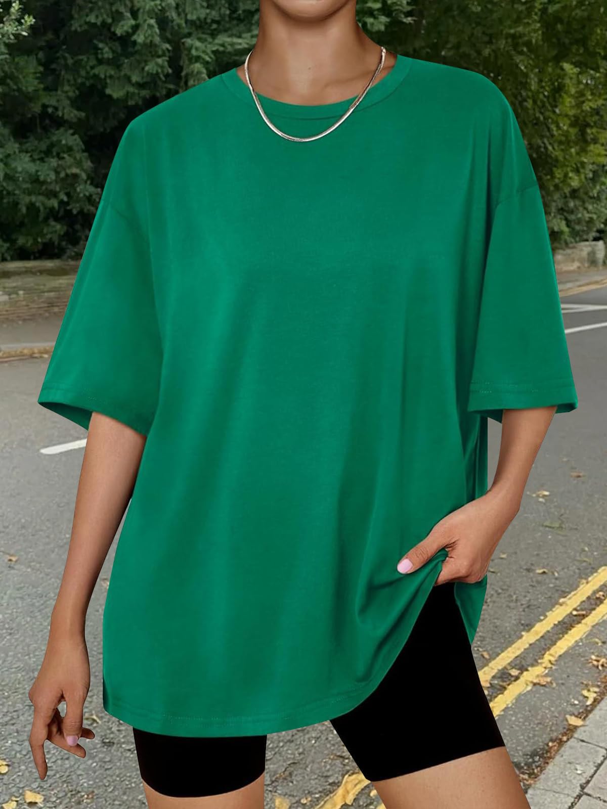 Design:Short sleeve shirts,round neck,loose fit tops,oversized casual blouse,solid color never out of style,easy to match with every style.