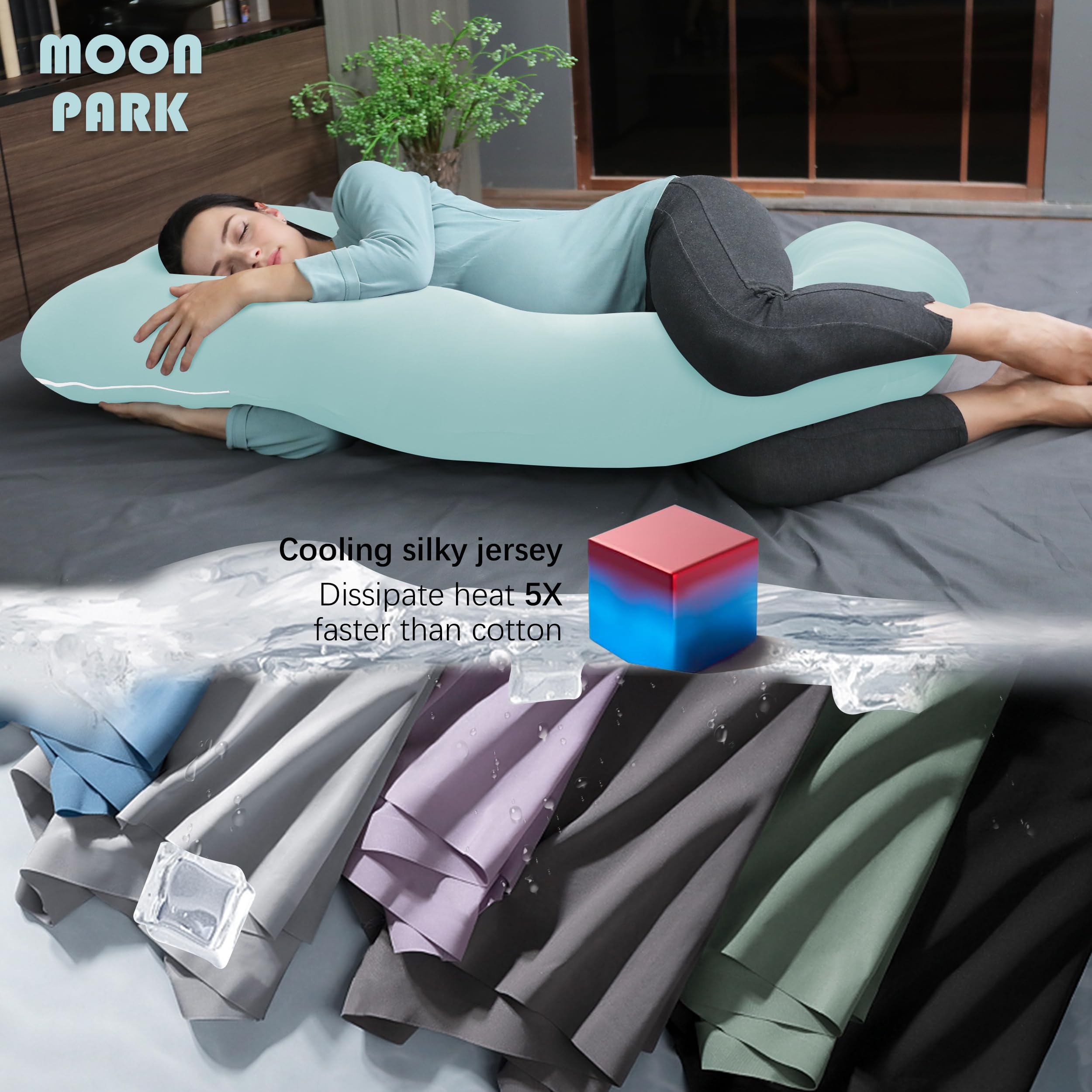 ✅Ergonomic Design for Adults - Moon Park full body pillow is designed with ergonomics in mind, offering optimal support for your head, back, belly, sides, knees, hips, and feet. Its unique shape replaces the need for multiple bed pillows.