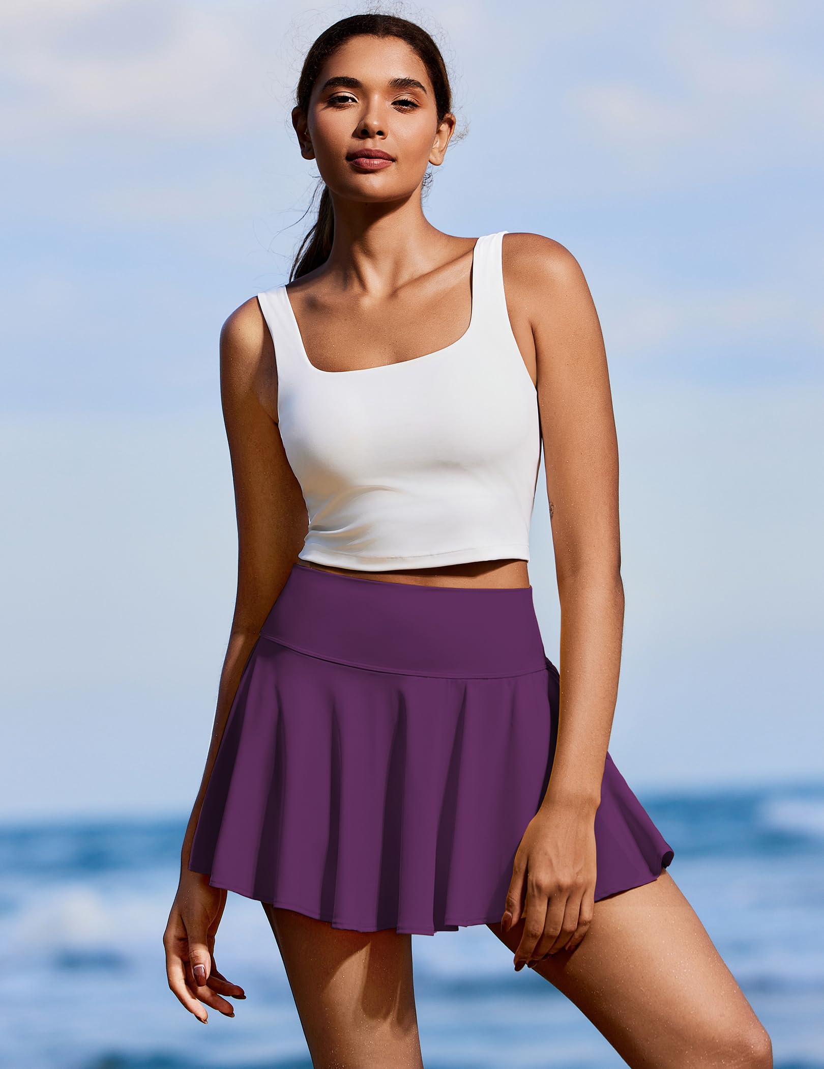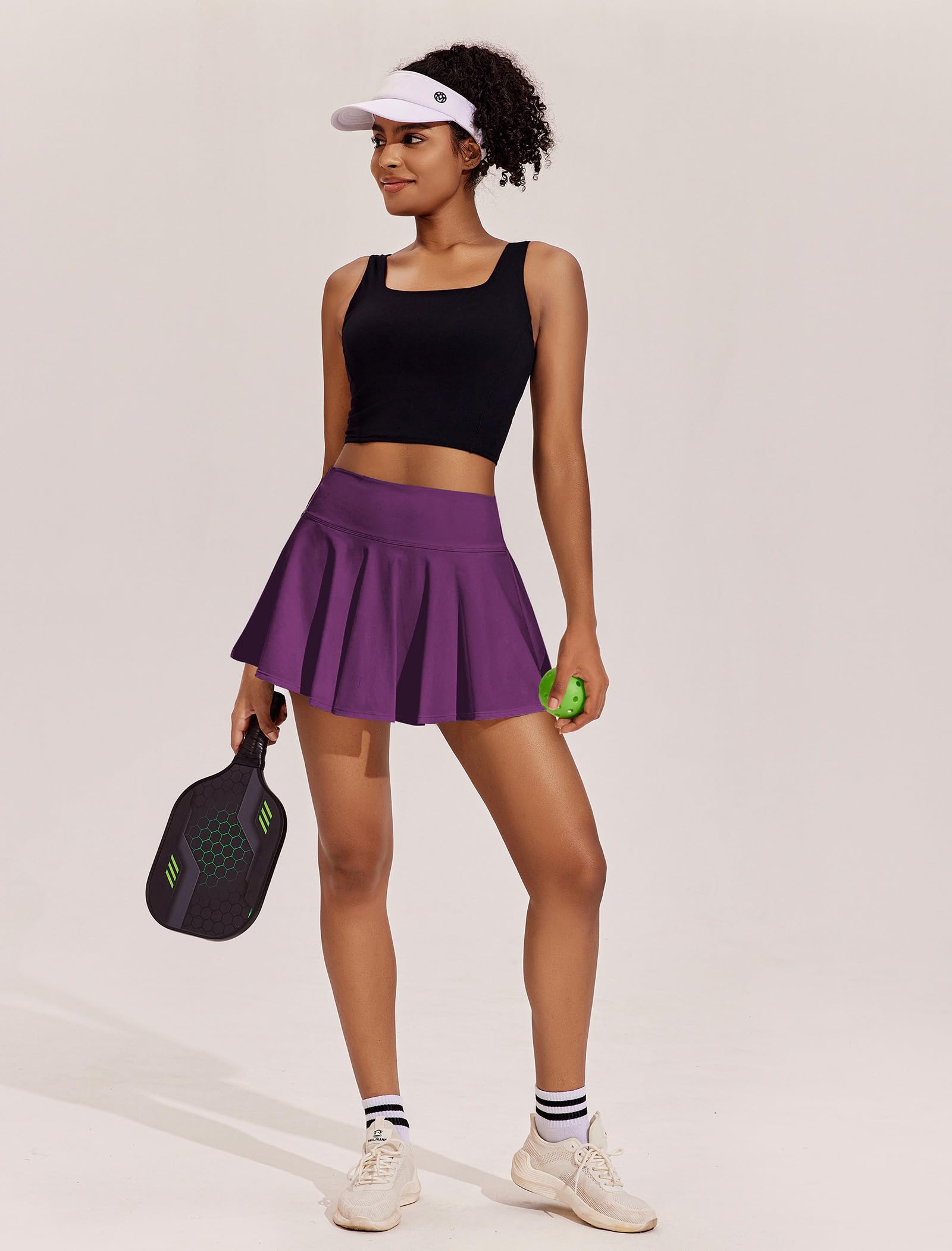 Stylish Pleat Design: The 14" workout skirt enhances your sporty-chic with cute flowy pleats, while making you move freely. Please consider your height and preferred length when ordering.