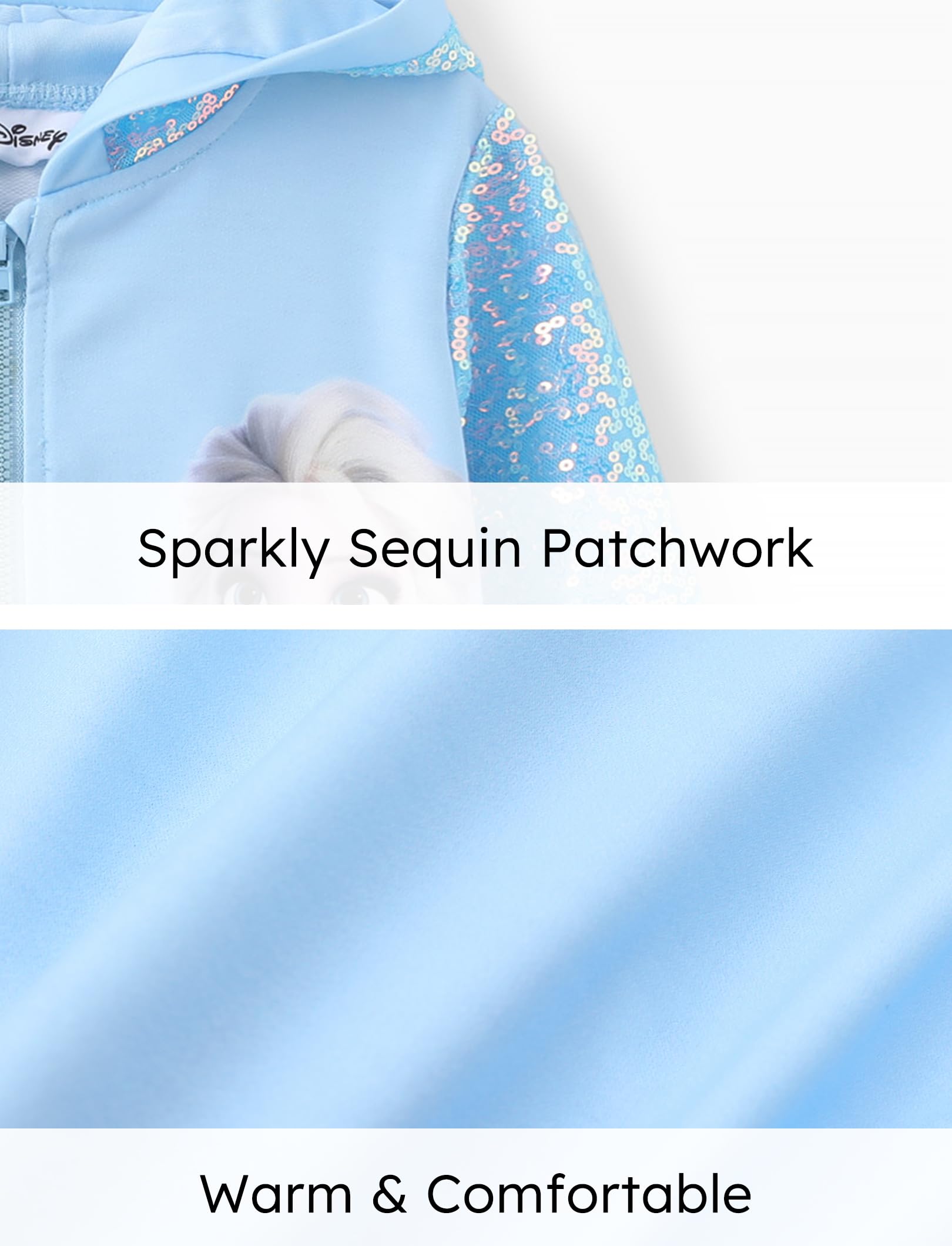 Charming & Unique Designs:This Frozen jacket features a vibrant, oversized print of Elsa or Anna, capturing her icy charm in a fun and stylish way. The sleeves and hood are adorned with sparkling sequin accents, adding a touch of shine to cooler days. The full-zip design ensures easy on-and-off wear, while the cozy hood provides extra warmth and comfort. Perfect for layering during fall and winter, it’s a must-have for fans of Frozen outfits for girls