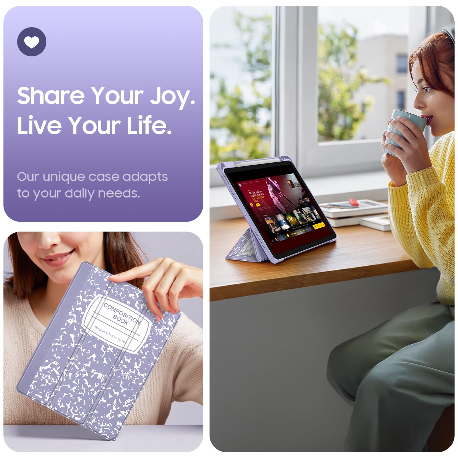 Seamlessly supports Apple Pencil Pro / Apple Pencil 2nd Gen magnetic and wireless charging when case is on. Tri-fold front cover has flip capability to transform the iPad case into a viewing stand and keyboard stand.