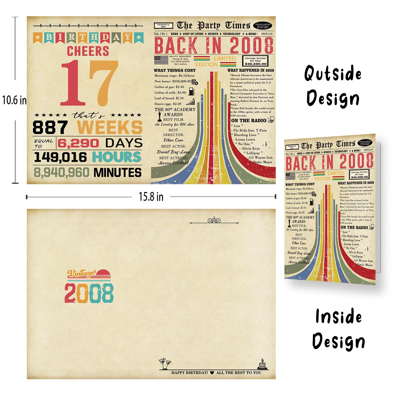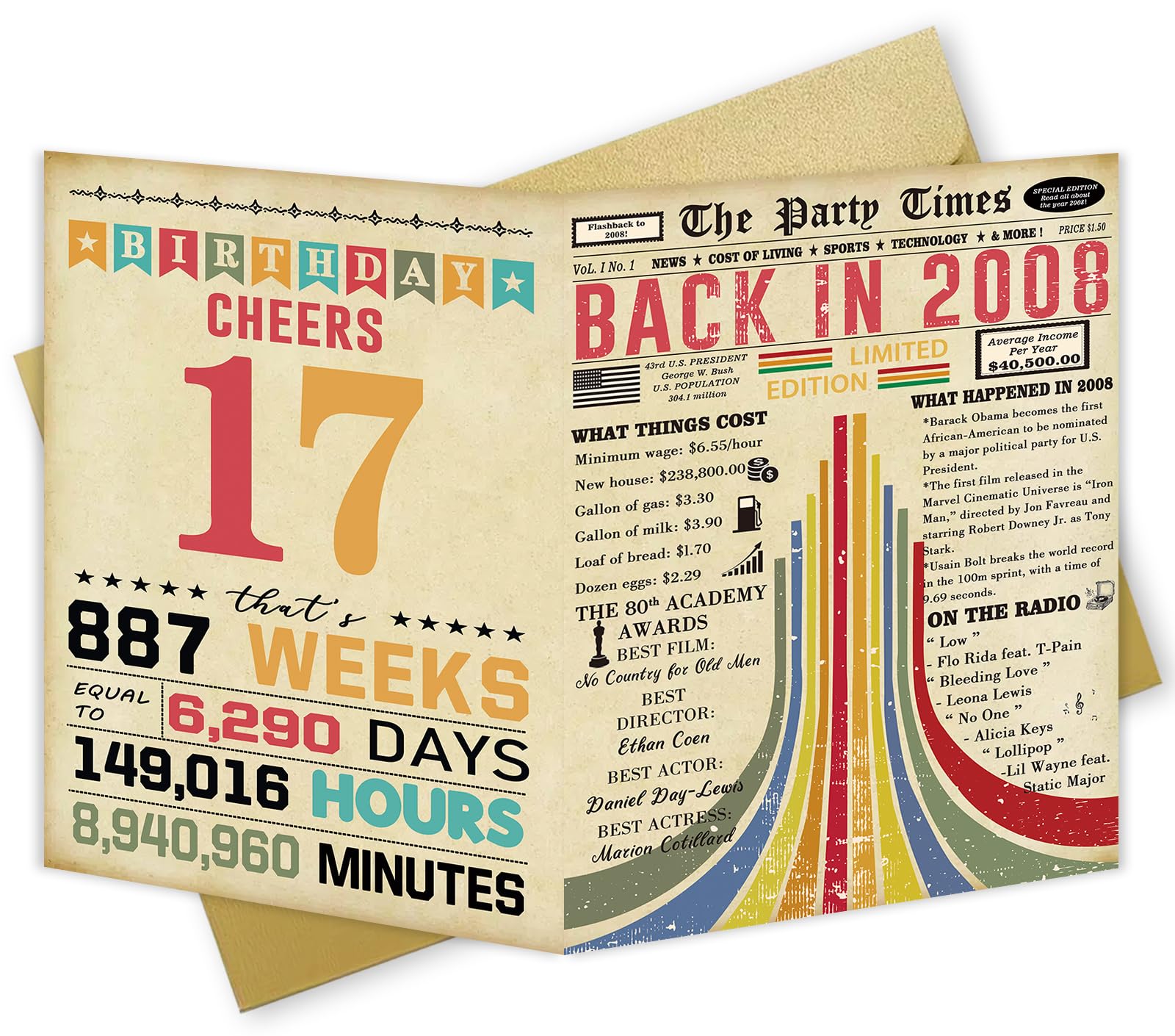 PERFECT GIFT IDEA -Find interesting 17th birthday cards for your friends. The cards contain some specific events fifty years ago, which can help you review interesting events with family and friends.