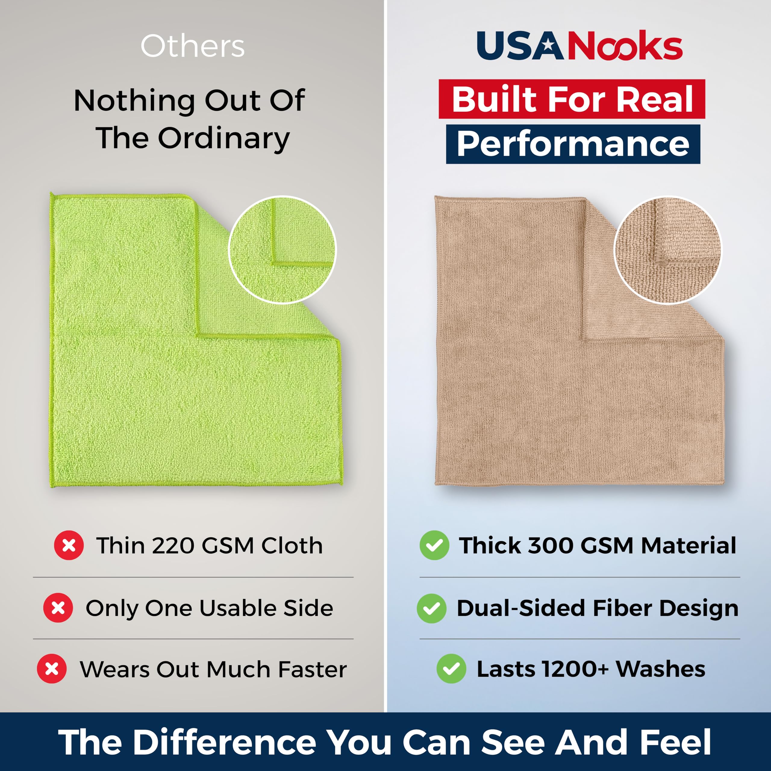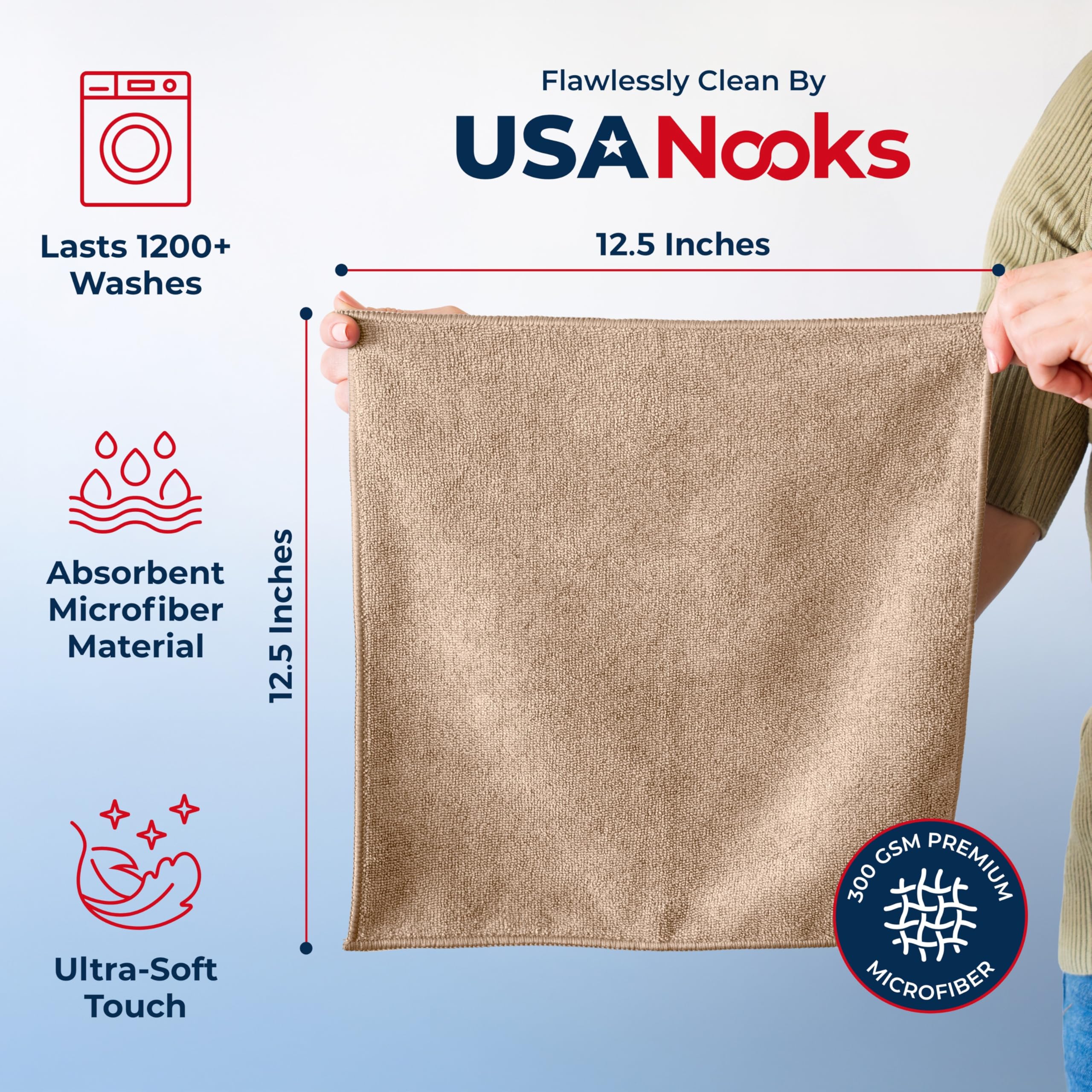 LASTS 1200+ WASHES - That’s 3.27 YEARS worth of use in this 12 pack of COMMERCIAL GRADE 300 GSM microfiber towels. OVERLOCK BRAIDED STITCHING make the ideal SUSTAINABLE SOLUTION for cleaning every SURFACE, CRACK & CREVICE in your home, garage or office. MACHINE WASHABLE, Tumble Dry.