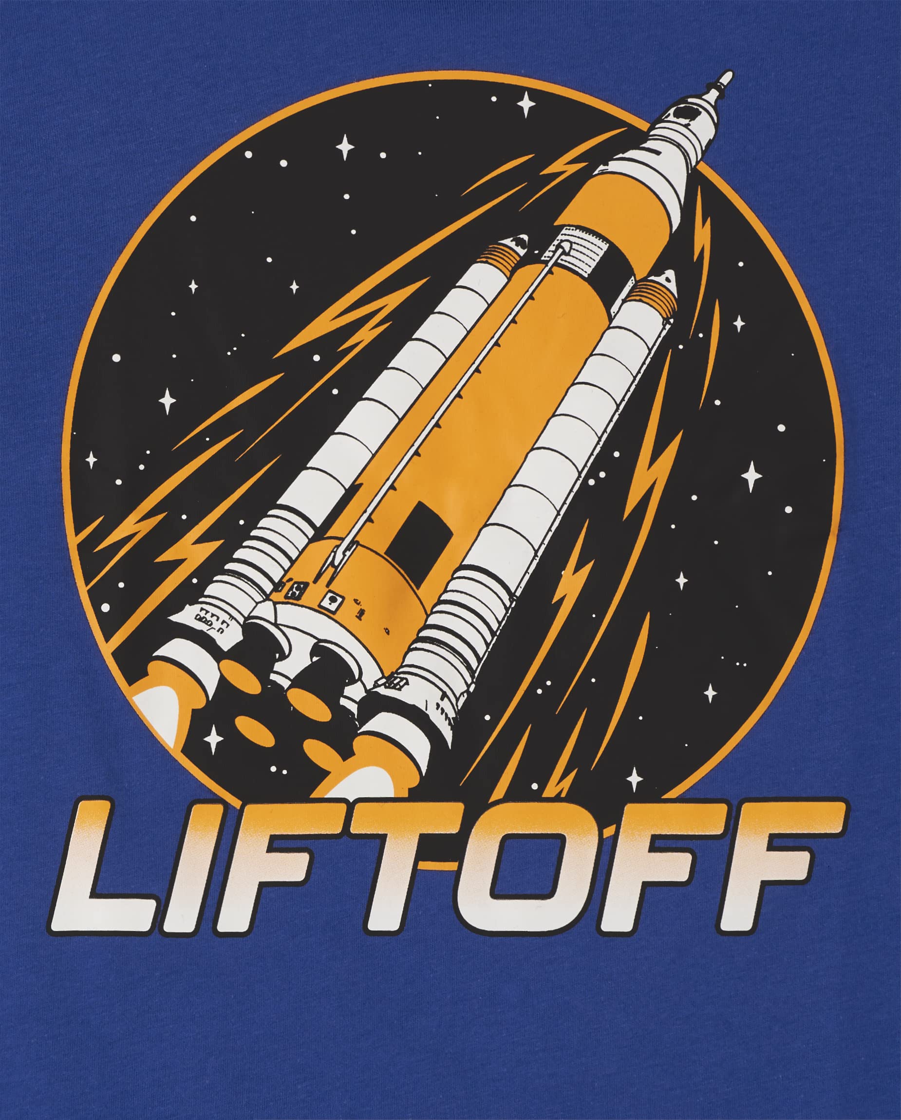 MULTIPACK β 2-pack of graphic t-shirts: 1 style with 'Liftoff' and rocket graphic design at front; 1 style with astronaut graphic design at front