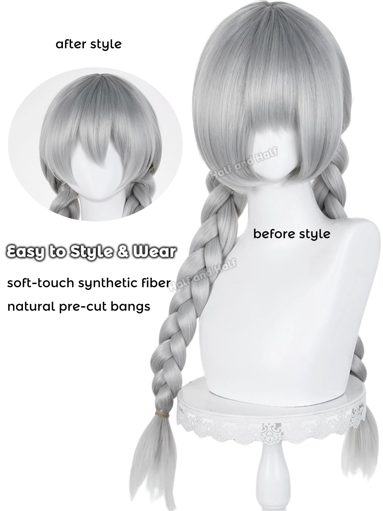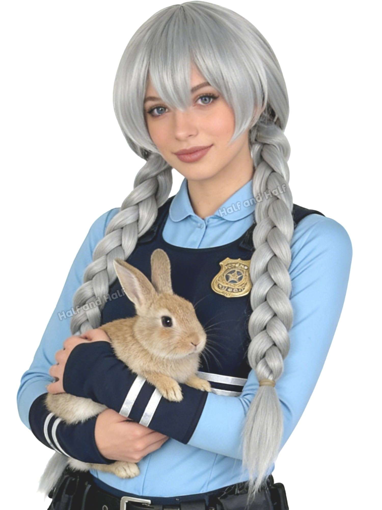 Design Inspiration & Packaging Includes: Inspired by bunny police officer character archetype: Features a silver-gray double-braided style with bangs, blending modern aesthetics with playful versatility. Package contents: 1 pre-styled braided wig (29.5 inches long), ready for immediate wear.