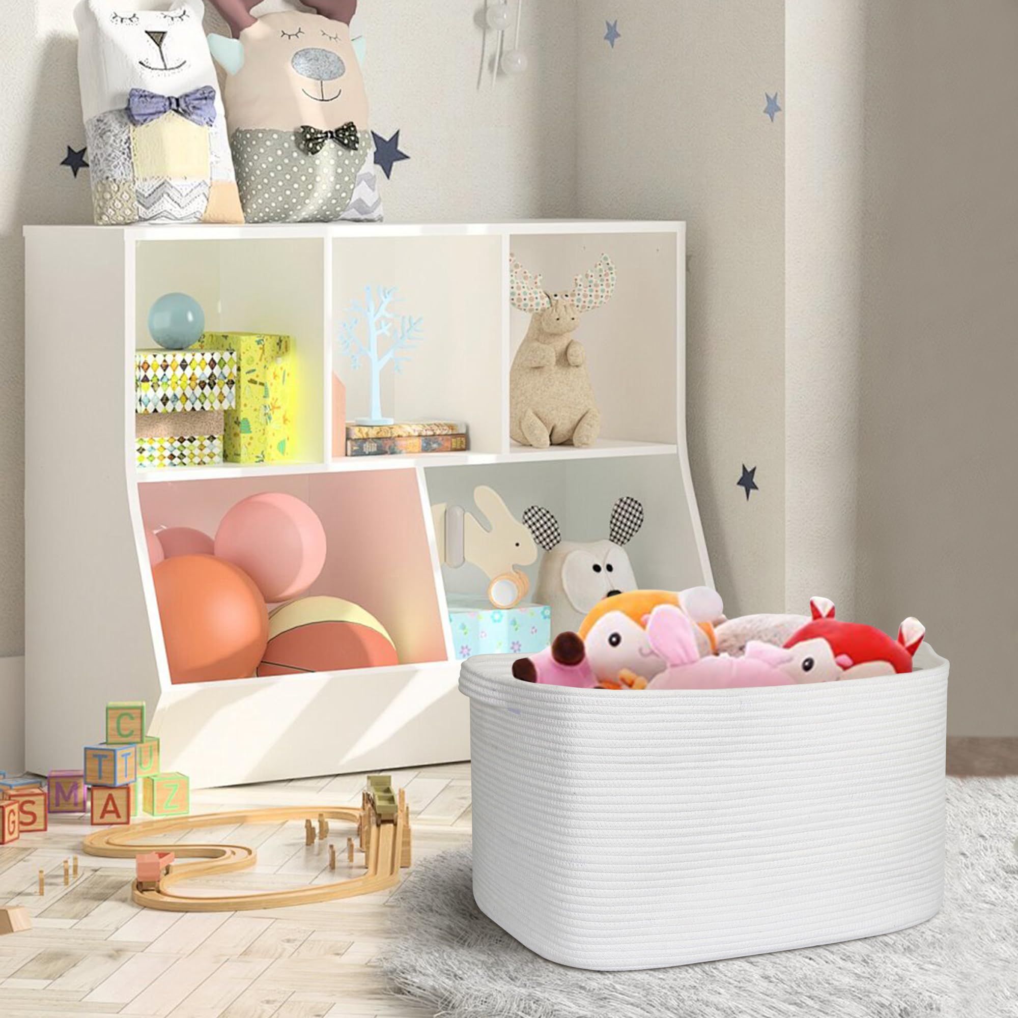 WASHABLE STORAGE CONTAINER: Hand or machine washable. XXXL large toy basket with two built-in handles is easy to moving toys, ,throws, blankets, pillows, sheets from room to room. Large open top is roomy and easy for kids to reach in and get toys which they want to play with. Making the toys more organized and stay where they should be. A gift baskets for family and friends.