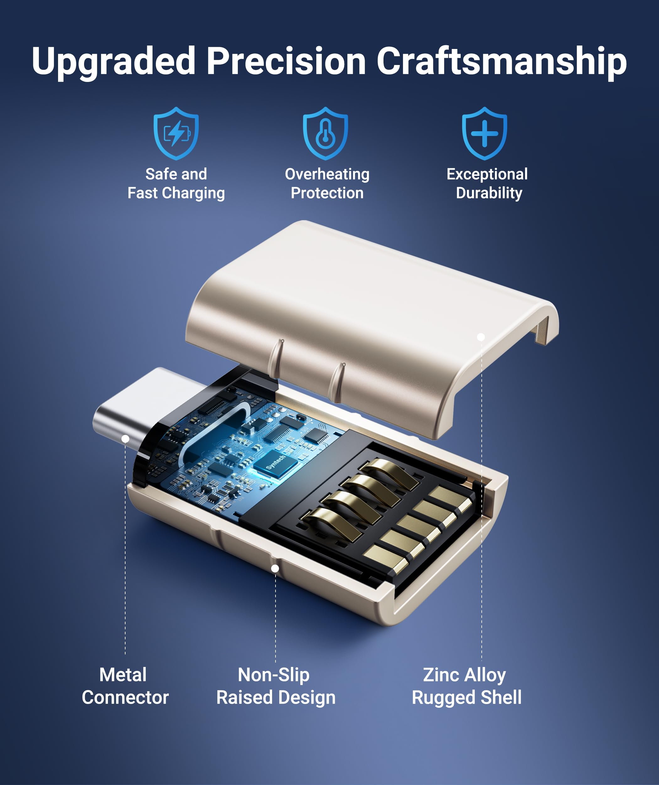 Design: The adapter is gathered with zinc alloy metallic minimalist design and delicate embossment for not slipping