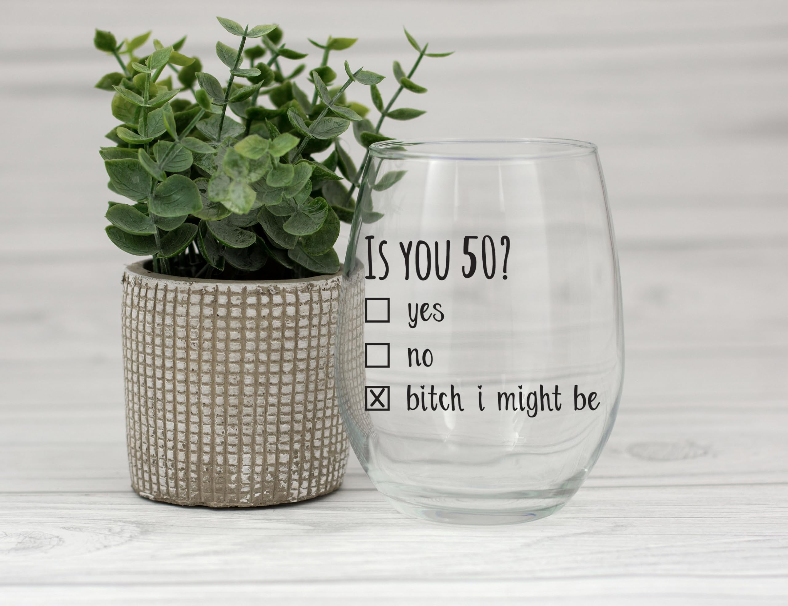 Ever ask yourself "I need a perfect gift that lets my loved one know how special they are?" This wine glass is the perfect choice for their special birthday! WINE LOVER? WINE ENTHUSIAST? OCCASIONAL WINE DRINKER? The wine glass makes drinking your favorite wine, red or white, vino, spirits, or adult beverage lol funny guaranteed! An affordable wine gift solution: Thinking of a unique gift idea can be daunting task. The Is You 50 wine glass gift is an inexpensive present or wine accessory for any wine lover or enthusiast (men or women):