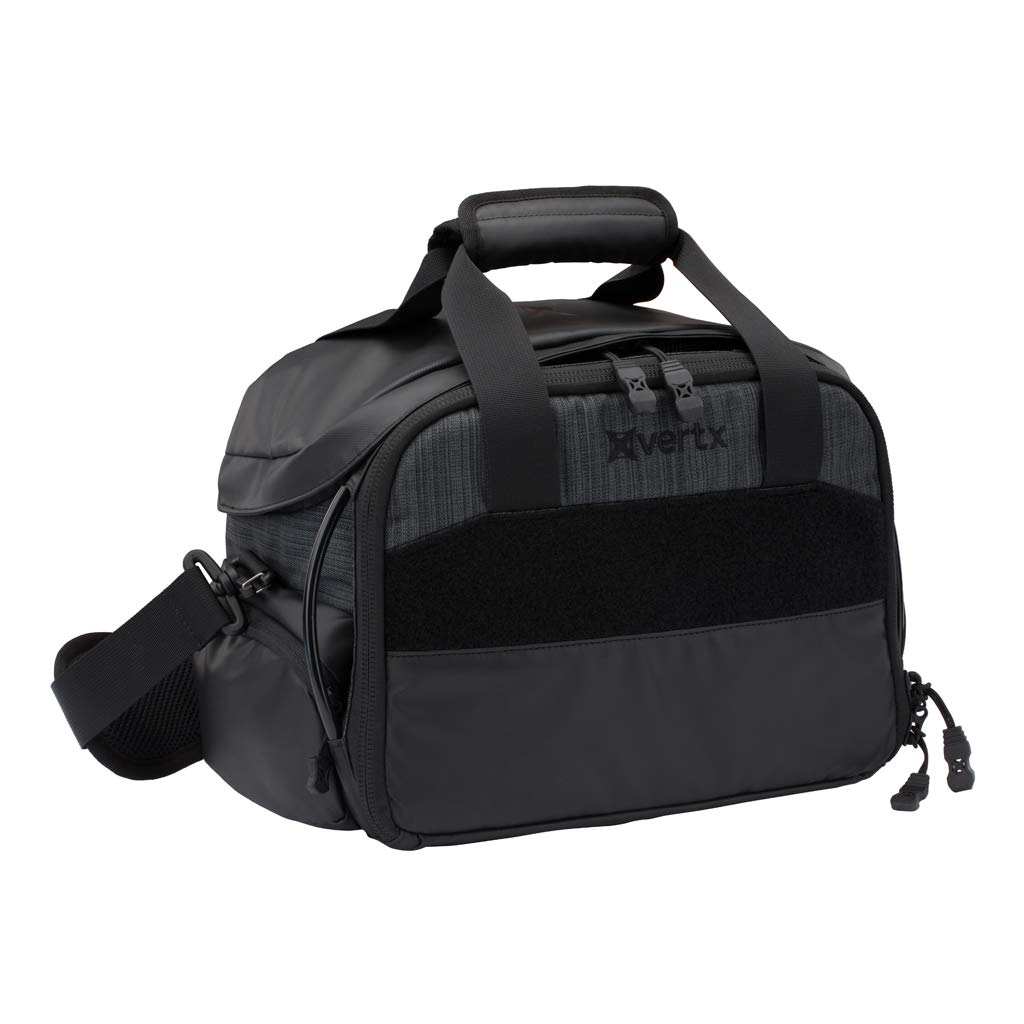 Full-length front access panel with lockable zipper pulls (lock not included) reveals portable semi-rigid gear caddie with removable liner to allow easy clean-up and two abrasion-resistant zippered mesh pockets