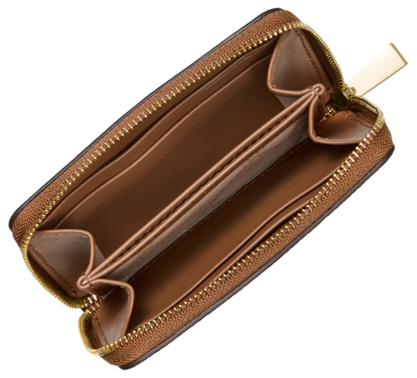 Materials: Crafted from pebbled leather with gold-tone hardware Our Leather: 100% of the leather in this product comes from tanneries receiving Leather Working Group Gold- or Silver-certification in recognition of their environmental performance Attention to Details: Interior 5 card slots, exterior back slip pocket, zip fastening and polyester lining. 3.75”W X 2.75"H X .75"D