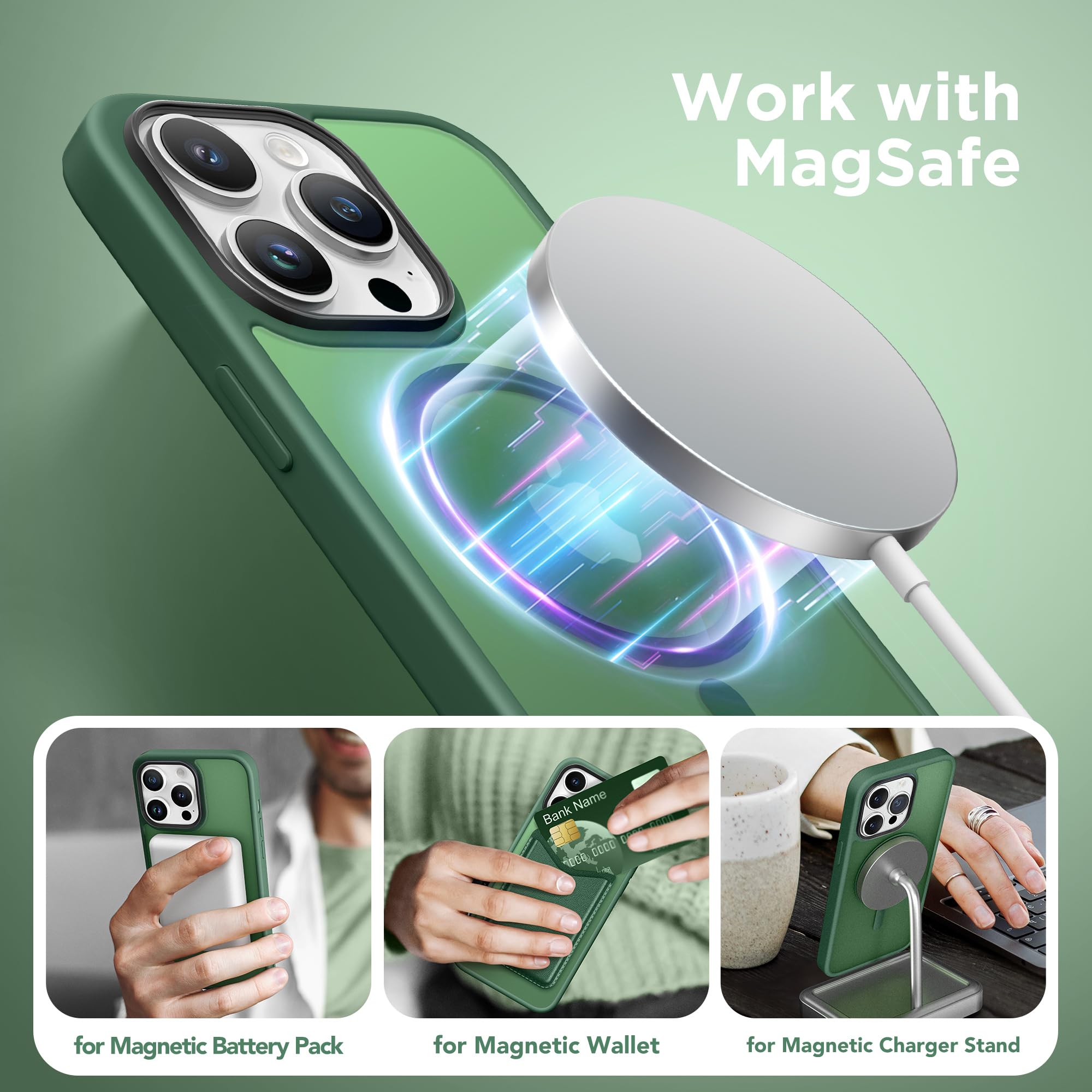 【Compatible with MagSafe】This iPhone 14 pro max phone case has a built-in magnetic ring. 48 strong N52 magnets are evenly distributed, magnetic strength is 4X stronger than other case. It can be perfectly and safely aligned with Mag Safe and other QI-certified chargers to achieve safe and fast wireless charging. It can be firmly and securely connected to all Mag Safe accessories, such as magnetic wallet, charger, battery pack, car mount, and will not fall off no matter how rotated or shaken.