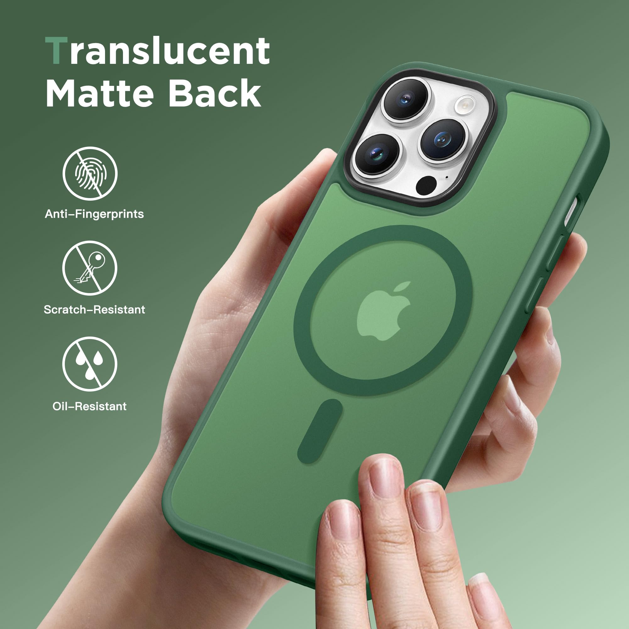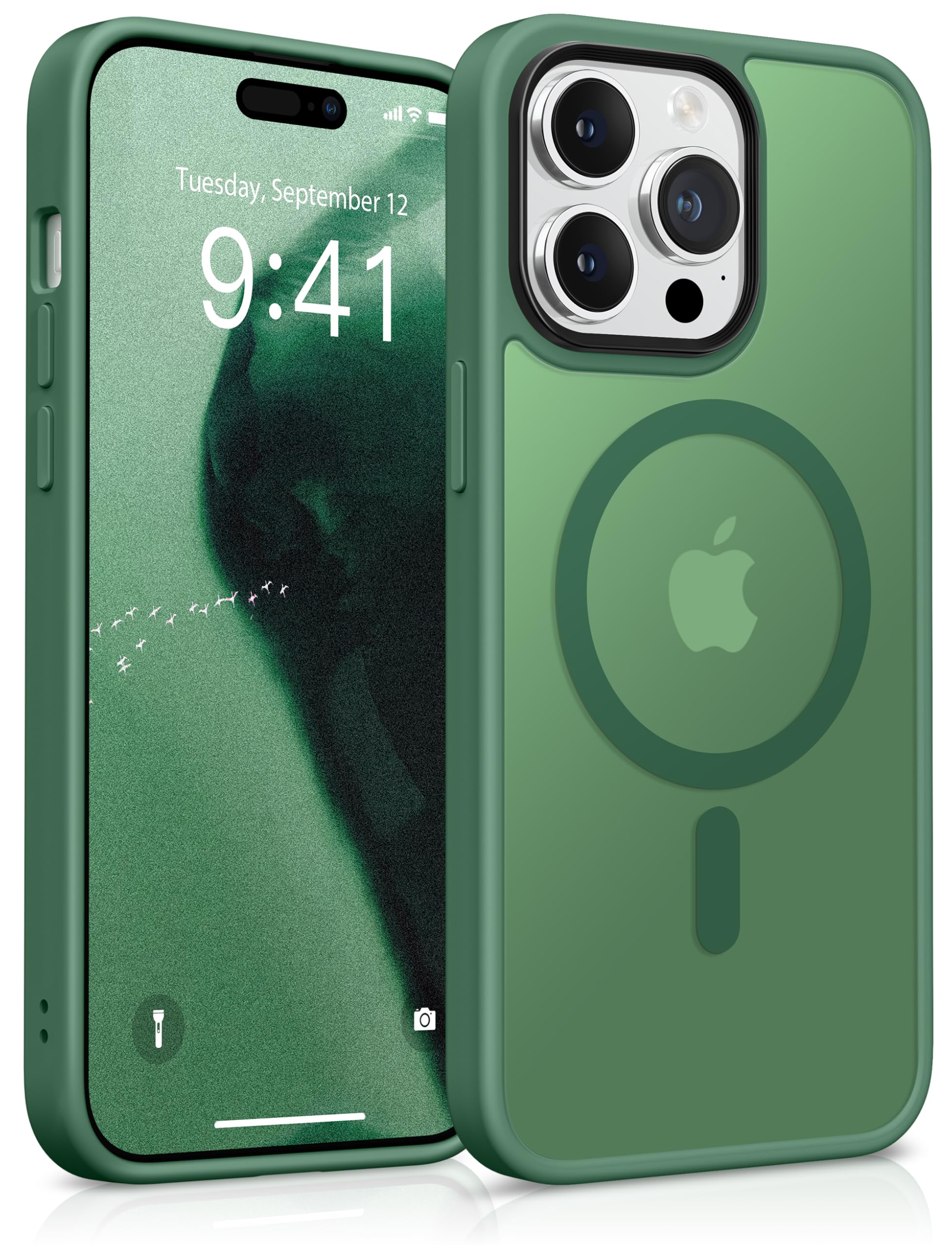 GONEZ Magnetic for iPhone 14 Pro Max Case,Compatible with MagSafe,[Military-Grade Drop Protection][Anti-Fingerprint] Slim Translucent Matte Back Shockproof Phone Protective Case(Lotus Green)