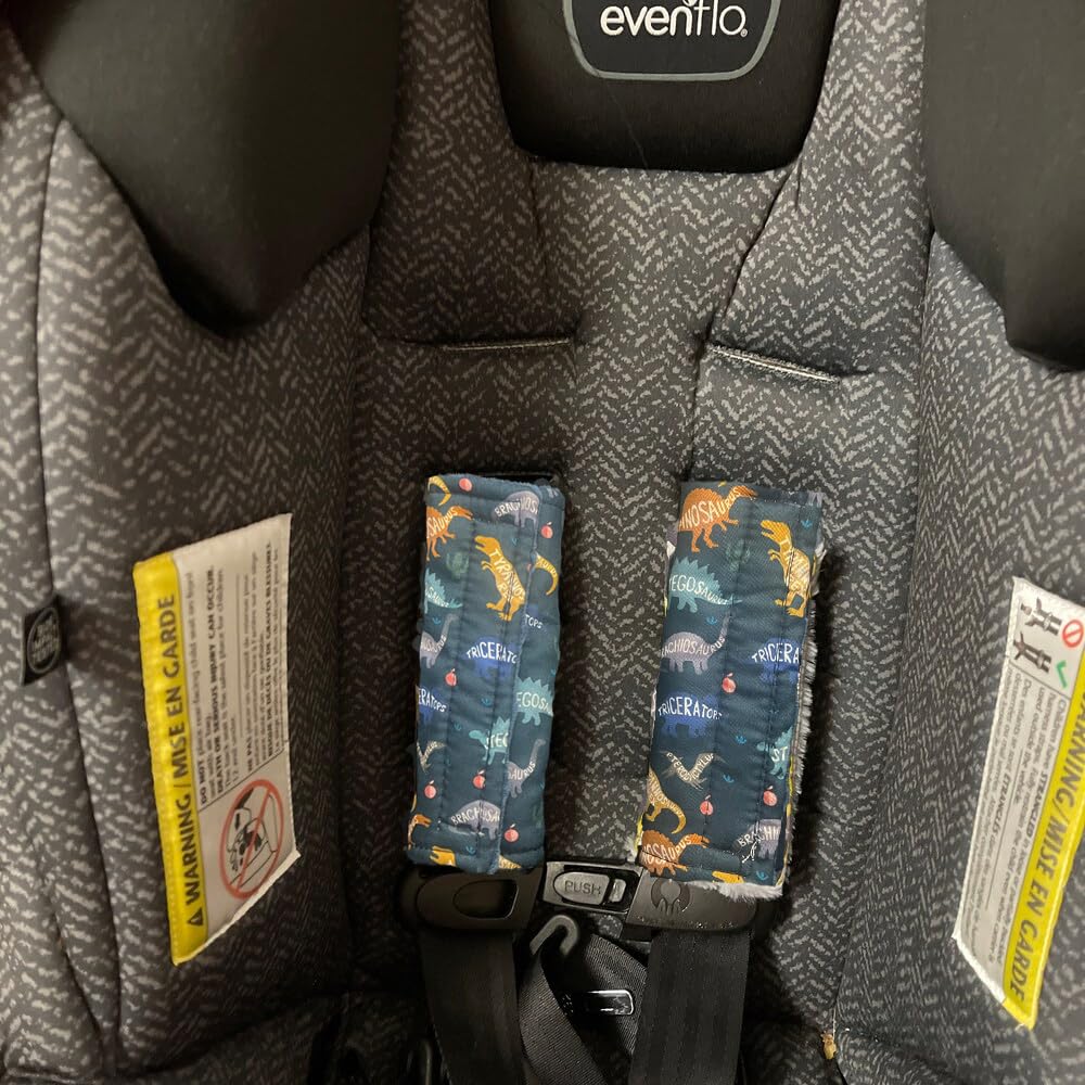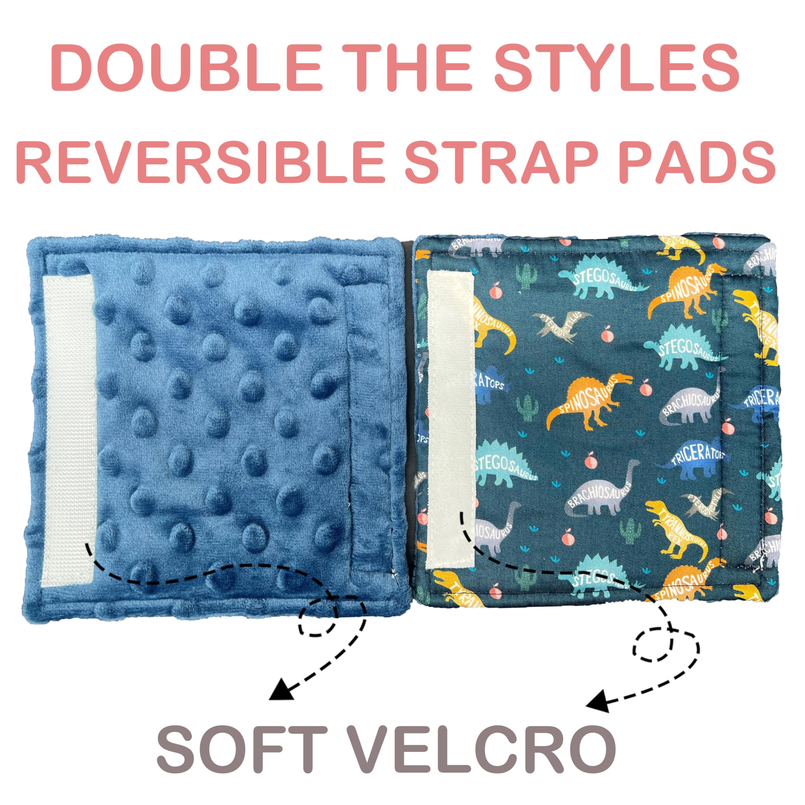 🦖DINOSAUR MINKY: Our car seat strap pad is designed with one side minky fabric and one side adorable dinosaur print. You could use in minky style or dinosaur style