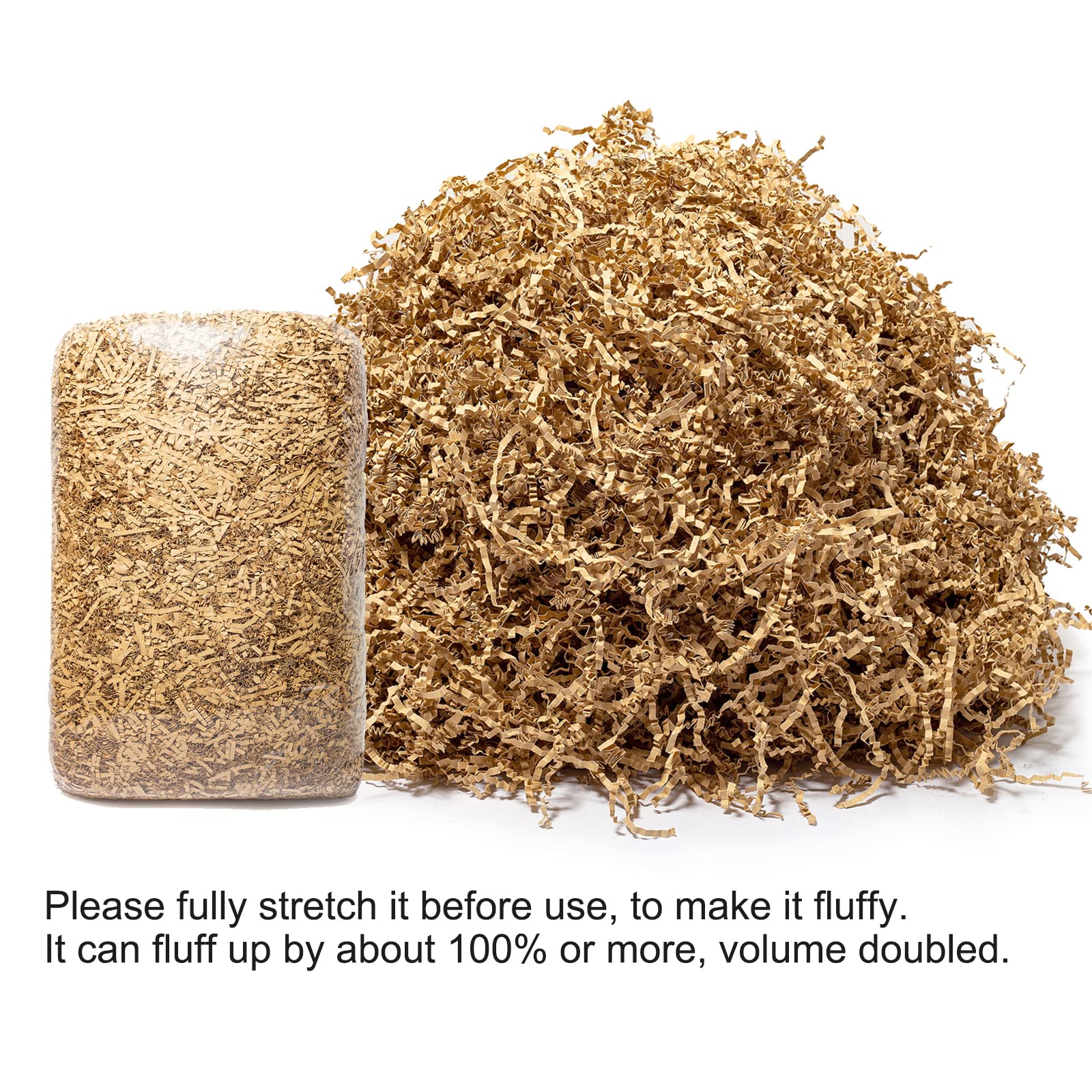 Crinkle Paper Volume: If each 8x8x4 inches gift box fill half of crinkle paper, then 0.5 LB can fill about 4 pcs of the boxes. Please fully stretch it before use, to make it fluffy, it can usually fluff up by about 100% or more, volume doubled.