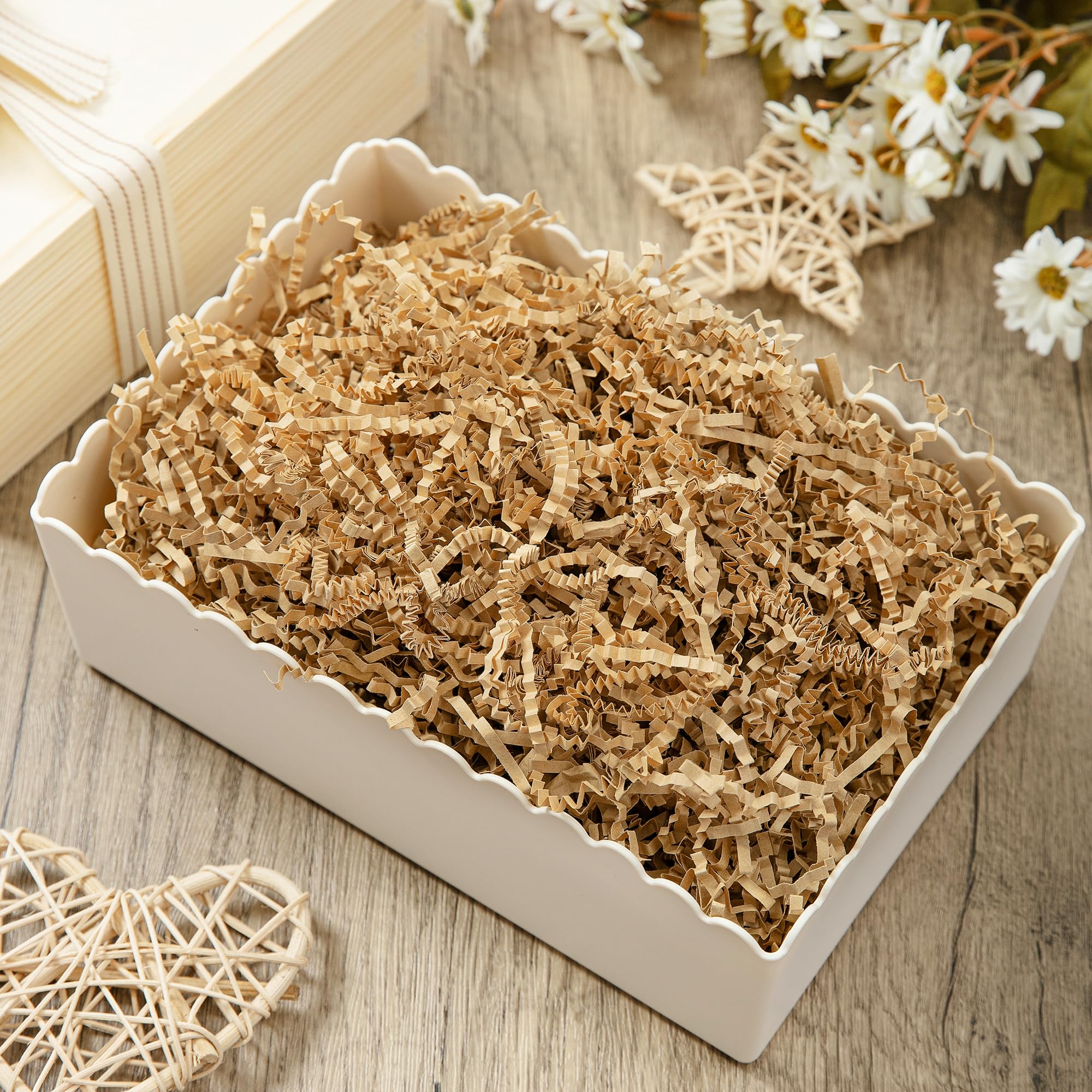 Shredded Paper for Gift Box: Decorate your gift with this brown crinkle paper to fully display your gift and make your gift more attractive.Perfect to fill the extra spaces in your gift boxes or basket.