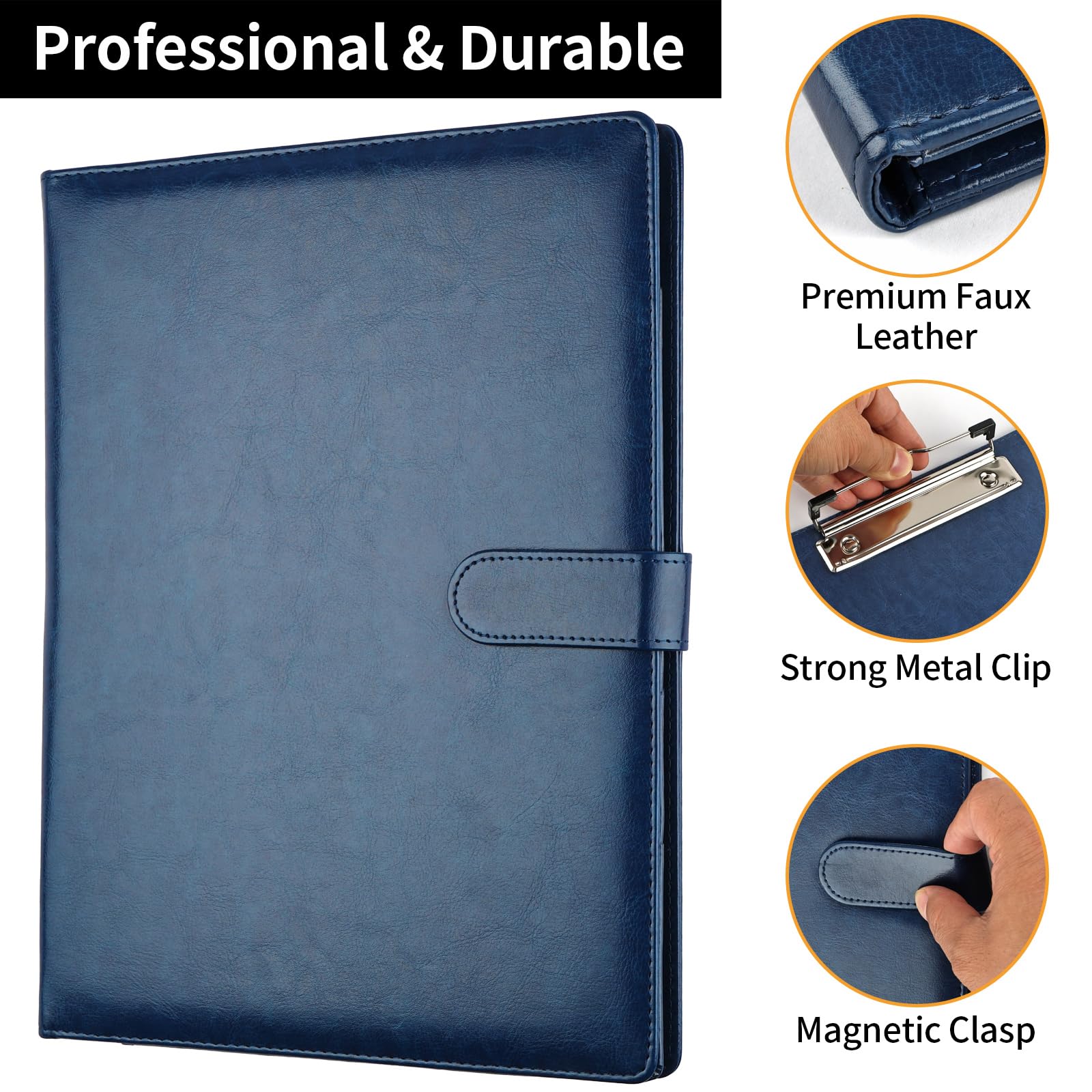 Premium Faux Leather: Crafted from premium faux leather with excellent stitching, this padfolio binder is lightweight, durable, and stain-resistant, perfect for a professional look