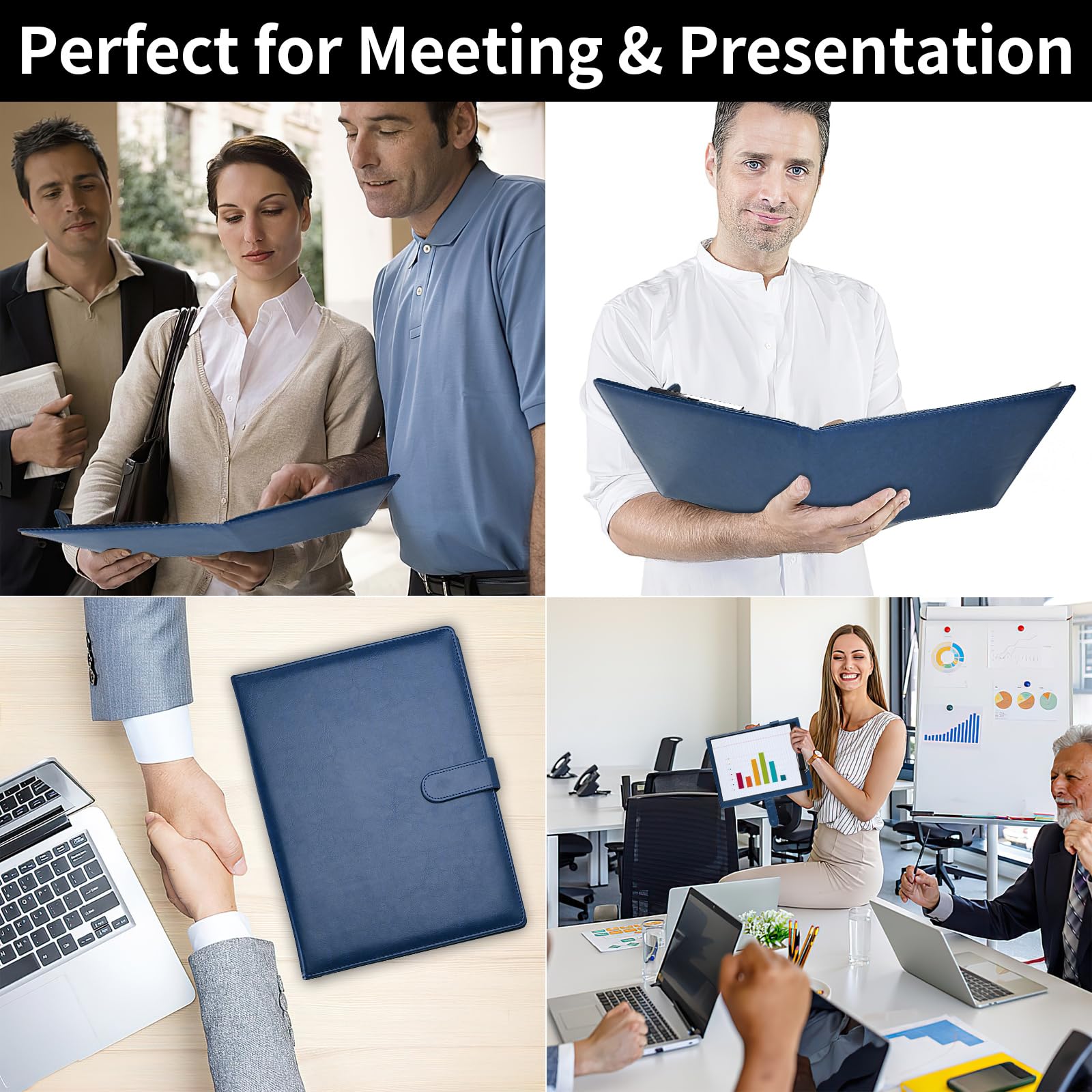 Perfect Size: The blue portfolio binder measures 9.6" x 12.6", designed to hold writing pads, A4 and letter-sized paper, ideal organizer for business, office, conference and school