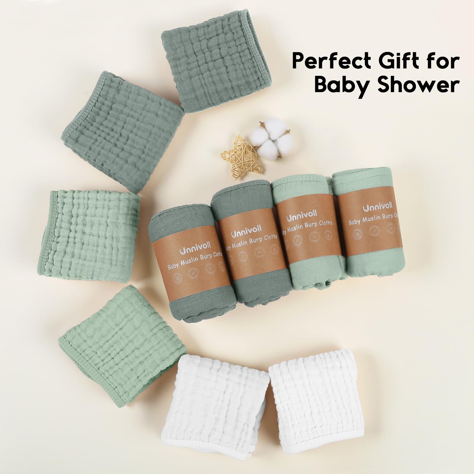 ❤Safety Comes First: Made from 100% premium quality cotton,Unnivoll muslin burp cloths is certified to meet Consumer Product Safety Commission (CPSC) guidelines, eliminate all potential risks and provide a soft, breathable, cloud like comfort for your little one. The natural muslin is also suitable for all skin types including sensitive and delicate skin, perfectly use on the face, hand and body.