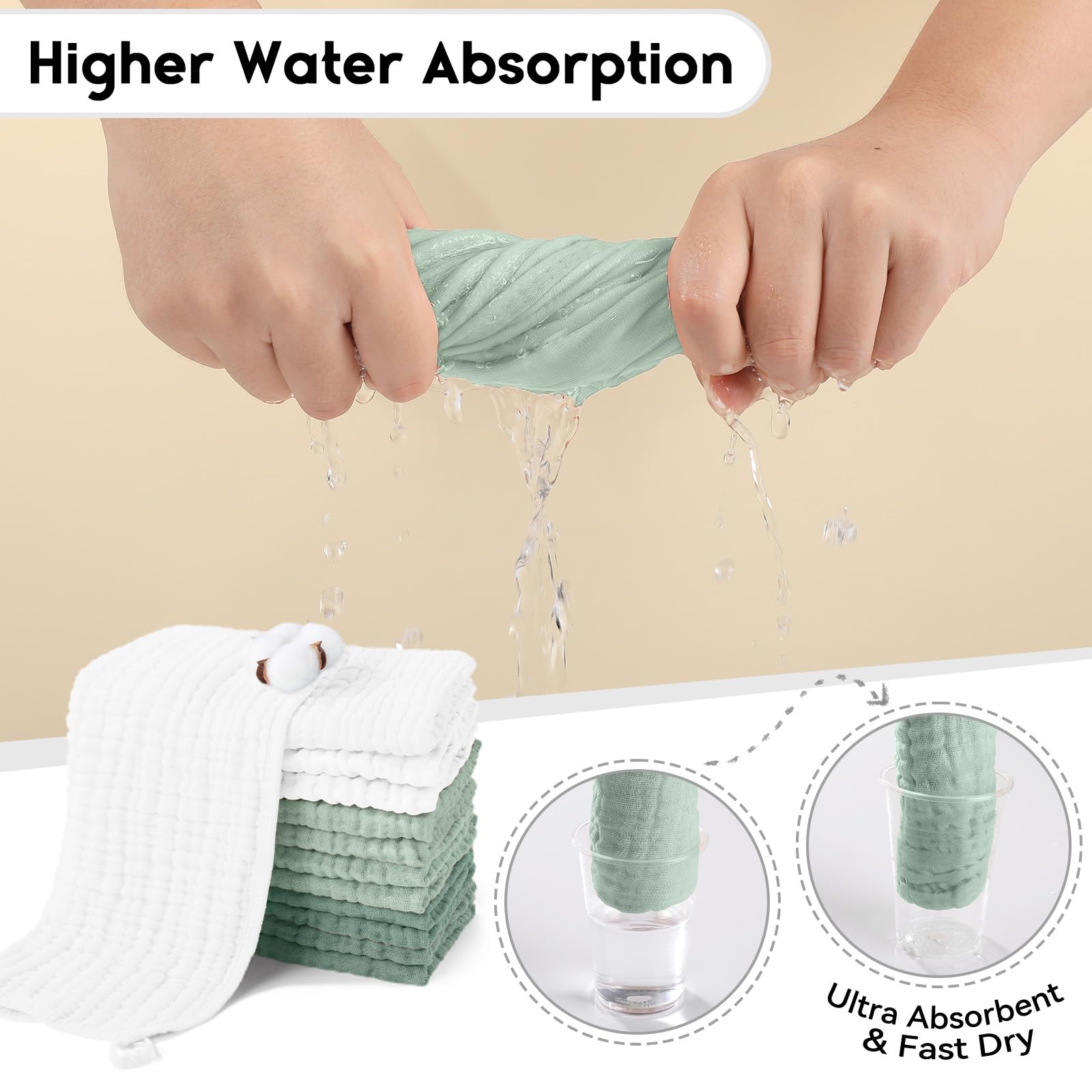 ❤Care Without Hassle: Pre-washing technology effectively reduces the shrinkage and reinforced edges prevent unraveling, which ensures the baby burp cloths can be machine washed and dried at low temperatures, it will still in shape and even get softer after washing several times. We care not only for babies, but also for busy parents!