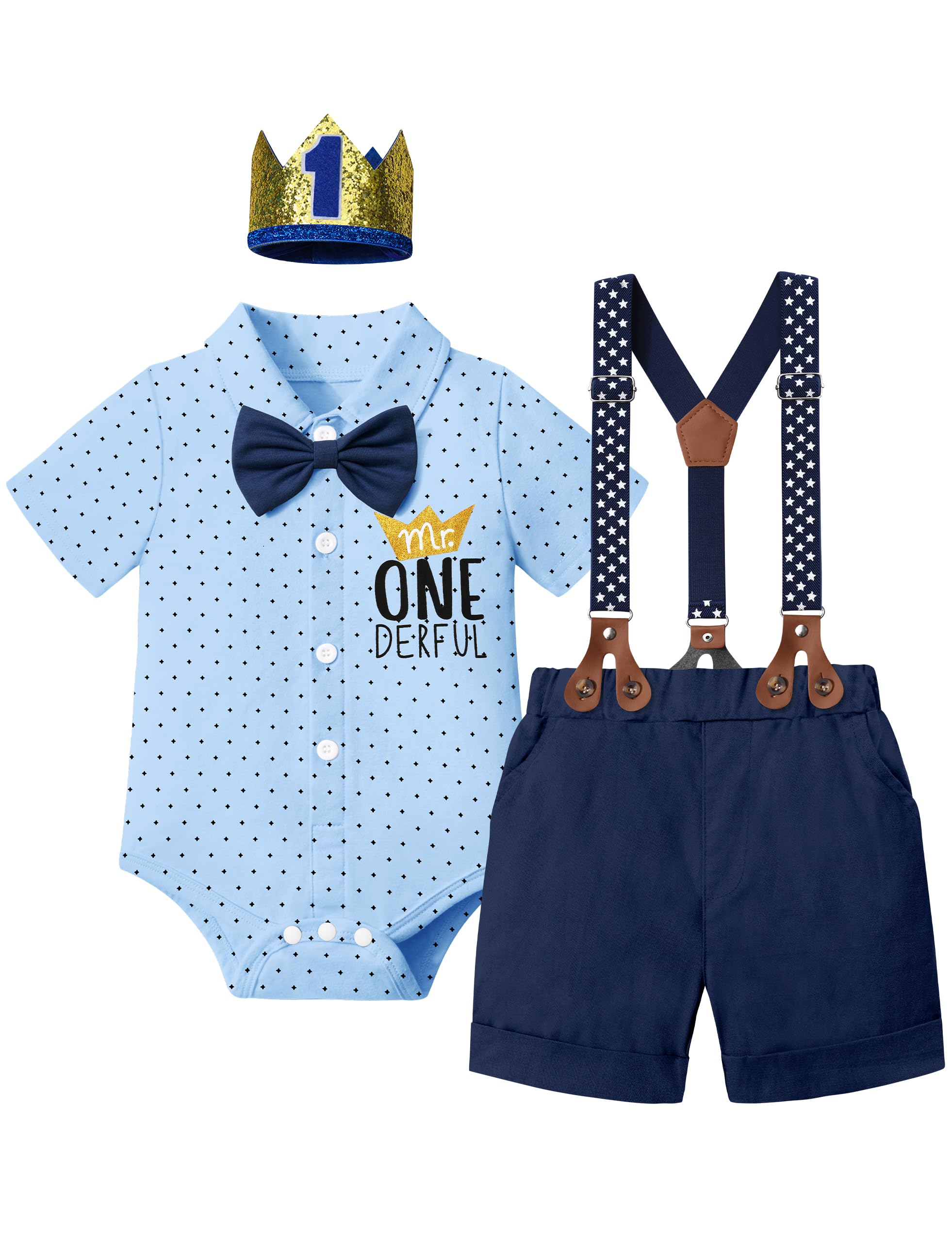【Package Included】The baby boy first birthday outfit package includes 1 x short sleeve romper + 1 x Suspender Shorts + 1 x birthday crown. Go and buy one now! Your little boys will get lot of compliments from this outfits set. Please feel free to contact us if you have any questions