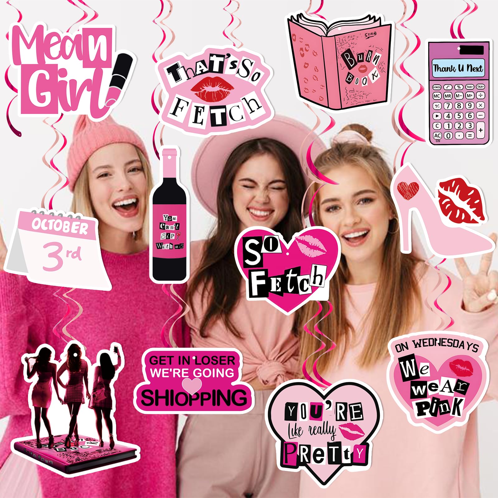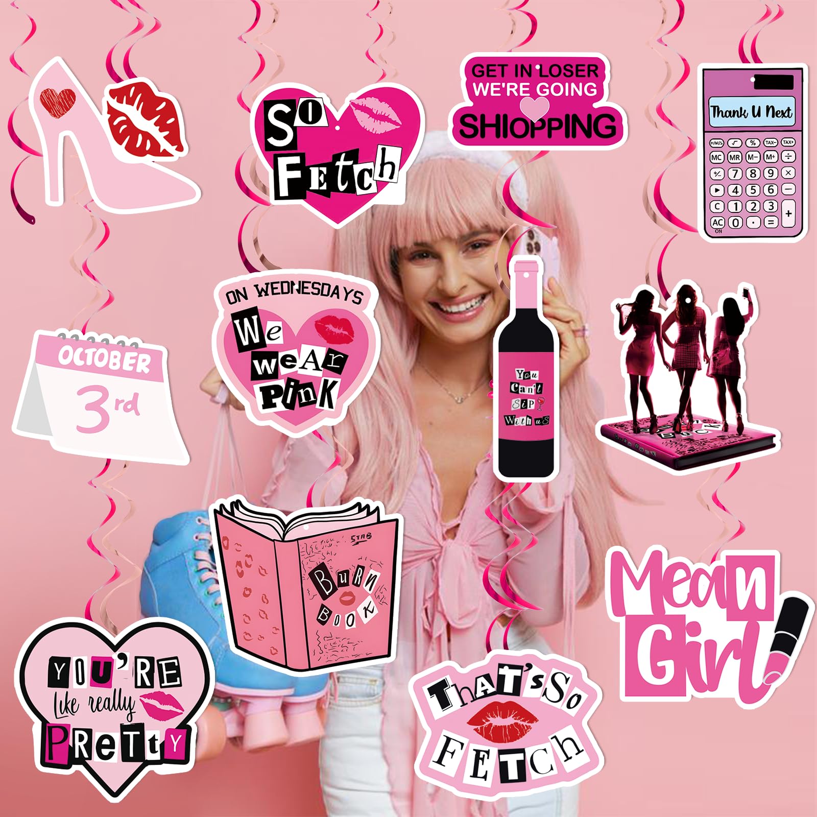 Ultimate Pink High School Queen Theme: Transform your event into a stylish popular girl birthday Party with these 12 iconic spiral decorations. Perfect for adding that extra flair to your Popular Girl Birthday Party Set, featuring classic quotes and fun visuals