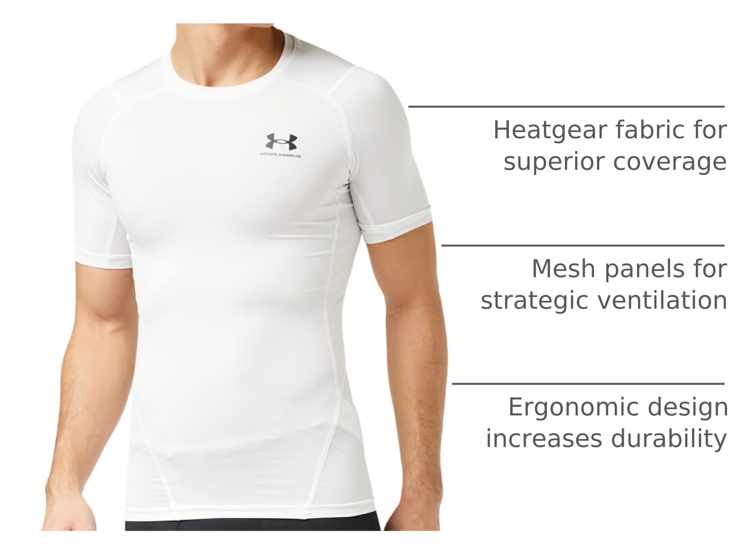 Description HeatGearยฎ Armour is our original performance baselayerโthe one you put on first and take off last. So we made it extra comfortable by wicking sweat and stretching so you can move no matter what. Super-light HeatGearยฎ fabric delivers superior coverage without weighing you down. Mesh underarm & back panels for strategic ventilation. Material wicks sweat & dries really fast. Ergonomic design keeps seams off high abrasion areas & increases durability. Hybrid raglan sleeve construction for added range of motion & comfort. Write-in locker tag on back of neck for your initials or number. Compression:Ultra-tight, second-skin fit. 84% Polyester/16% Elastane.
