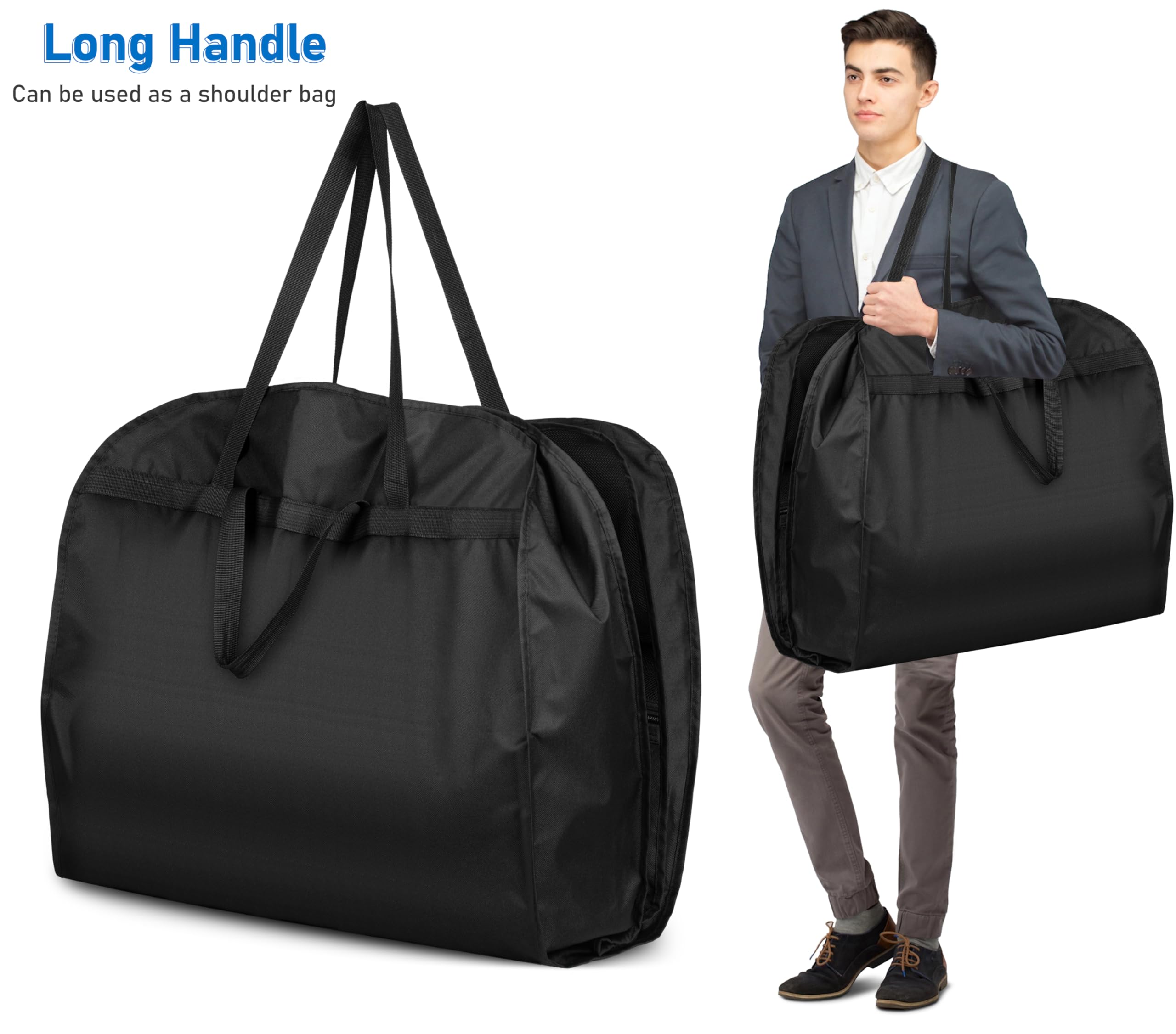 【Long & Short Handles】The foldable garment bags for travel for dresses has 2 long shoulder straps and 2 short handles, you can choose to carry it on your shoulder or hand, making travel easier
