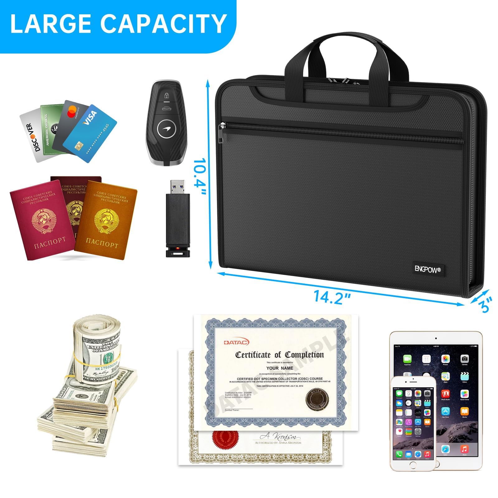 User-Friendly Features: Design with a strong grab handle for carrying everything you needed easily. Featuring a double zipper for convenient opening and closing,you won't have to worry about losing any important documents. The included labels make categorizing your files effortless. The fireproof file folder is suitable for business, travel, office, school, home storage, you can be 100% sure that your important documents are in a safe place