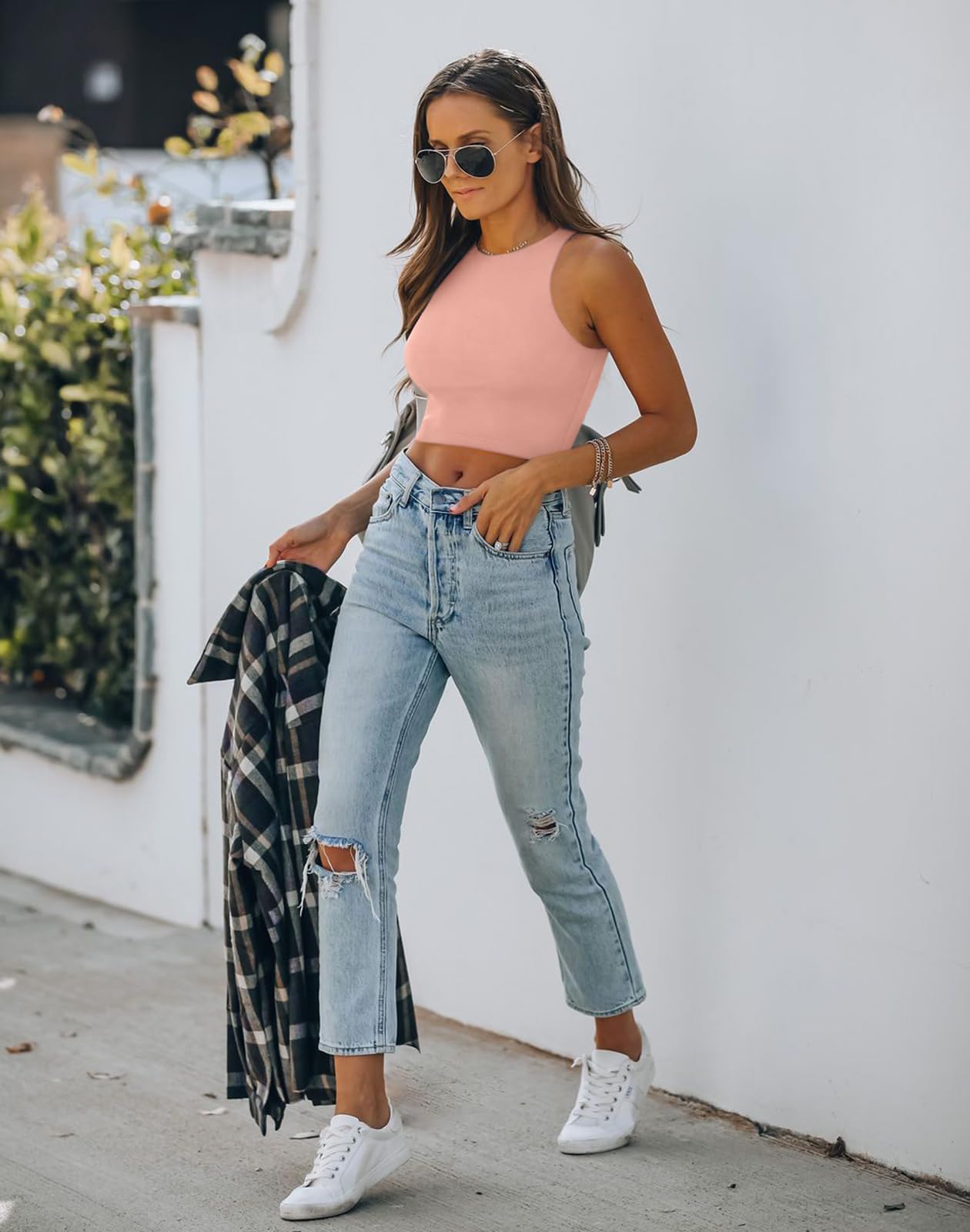 🌸This Trendy crop tank top is quite cute for teen girls and fashion women ladies, Features with high neck,halter neck,double line,racer back,cropped length,solid,tight slim fit,basic style which is bloggers favorite.