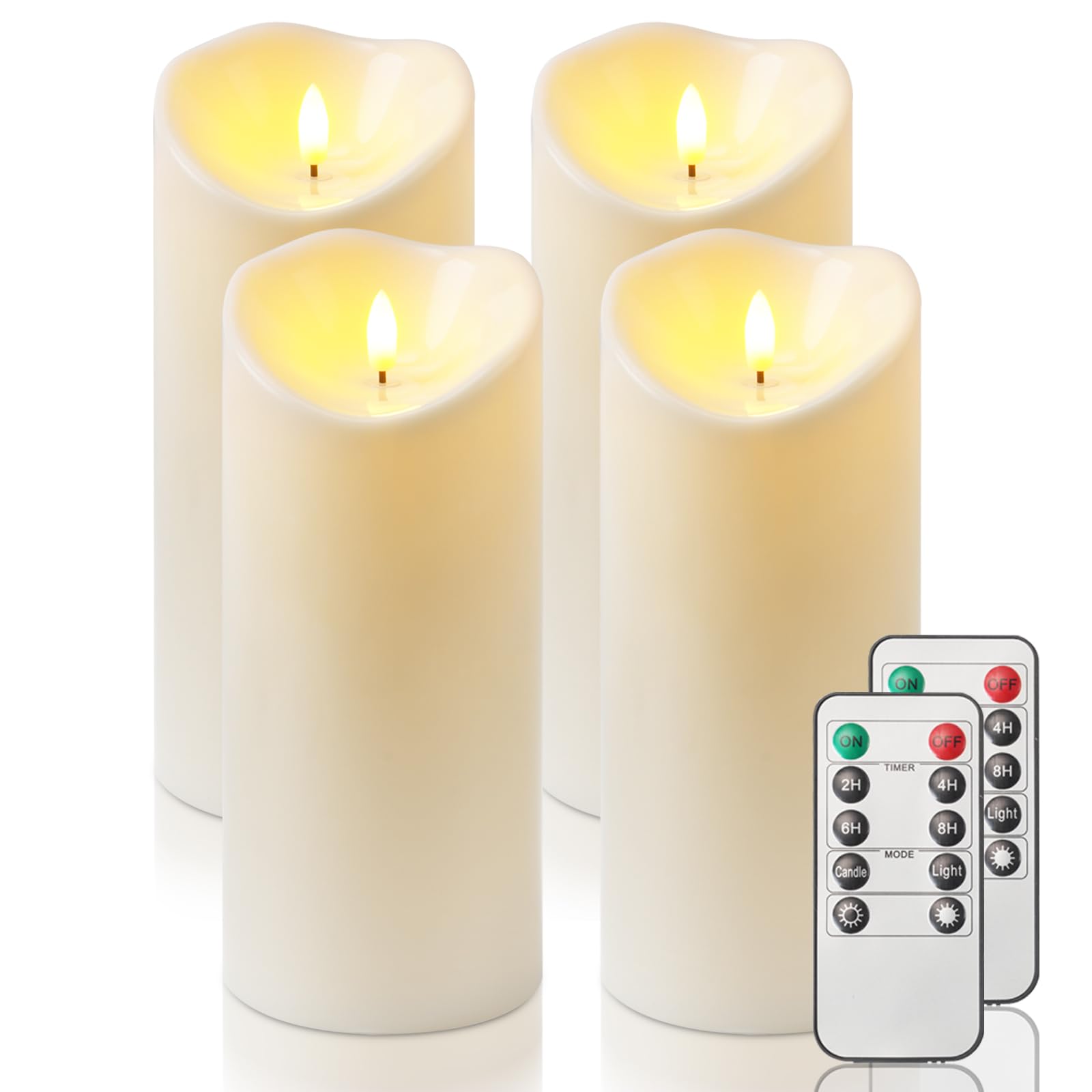 Smart Remote Control & Timer: Enjoy effortless operation with the 10-key remote, offering 2H/4H/6H/8H timer settings. The candles automatically relight daily at your chosen time, eliminating manual adjustments. Switch between flickering or steady glow modes and customize brightness to suit any mood.
