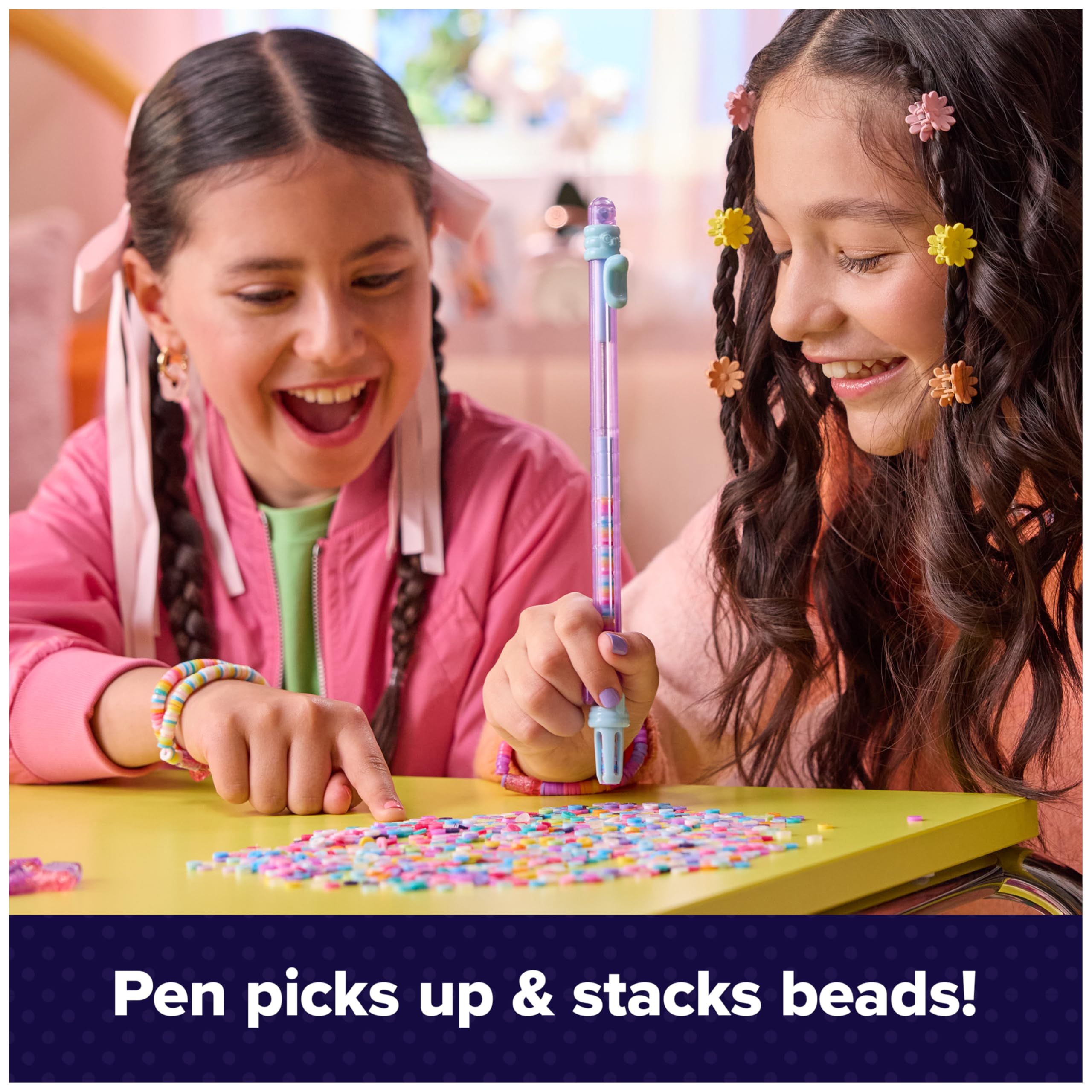 Create stylish heishi bracelets in a snap with the Cool Maker Stack’d Heishi Bracelet Studio. This all-in-one bracelet kit comes with everything kids need to easily make 15 bracelets, including over 1200 colorful heishi beads, 10 feature beads, a beading pen, and more. Girls can easily find their wrist size using the measuring guide, matching the symbol with the one on the pen to make the right size bracelet. Pick up beads with the pen and watch the design stack inside, then release the beads in the studio, right onto the string. Slide the wrist through the studio and press the button to make the bracelet magically clasp together. This Cool Maker bracelet maker will spark imagination as girls customize their own unique stacks or follow the included design guide, then stack their bracelets and wear and share with their BFFs. Whether you’re looking for engaging kids activities for sleepovers, parties, back-to-school, rainy days or for every day, the Stack’d Heishi Bracelet Studio is a welcome addition to your DIY jewelry making supplies, craft supplies and craft kits. Easily stack, string and snap with the Cool Maker Stack’d Heishi Bracelet Studio.