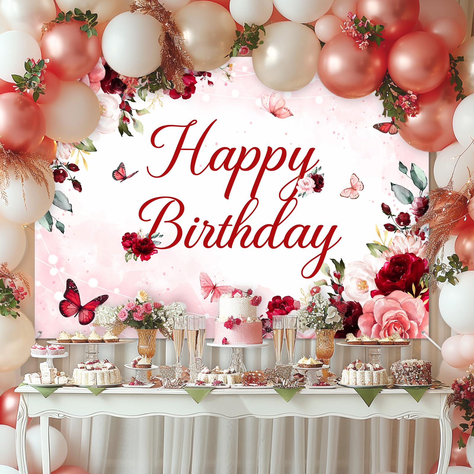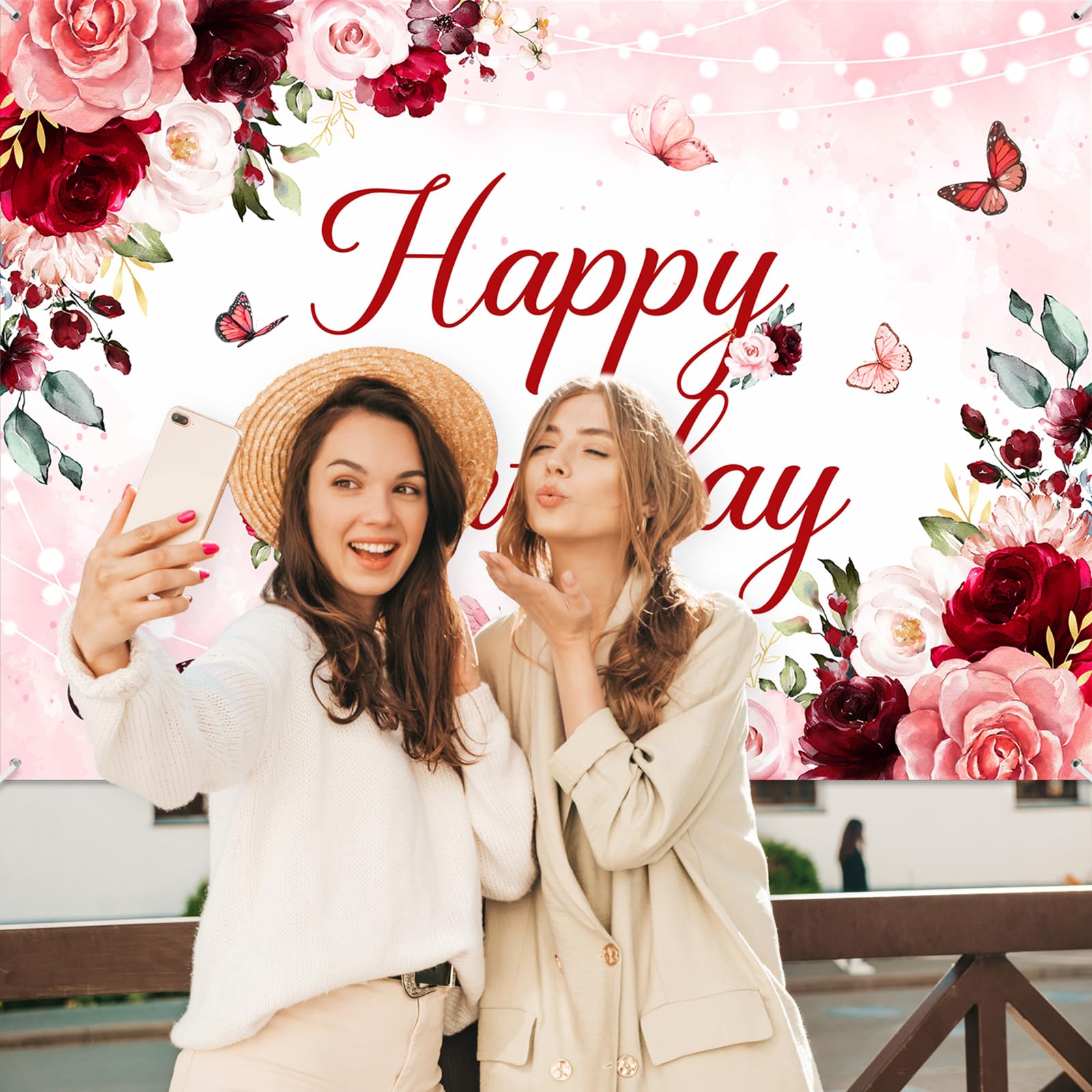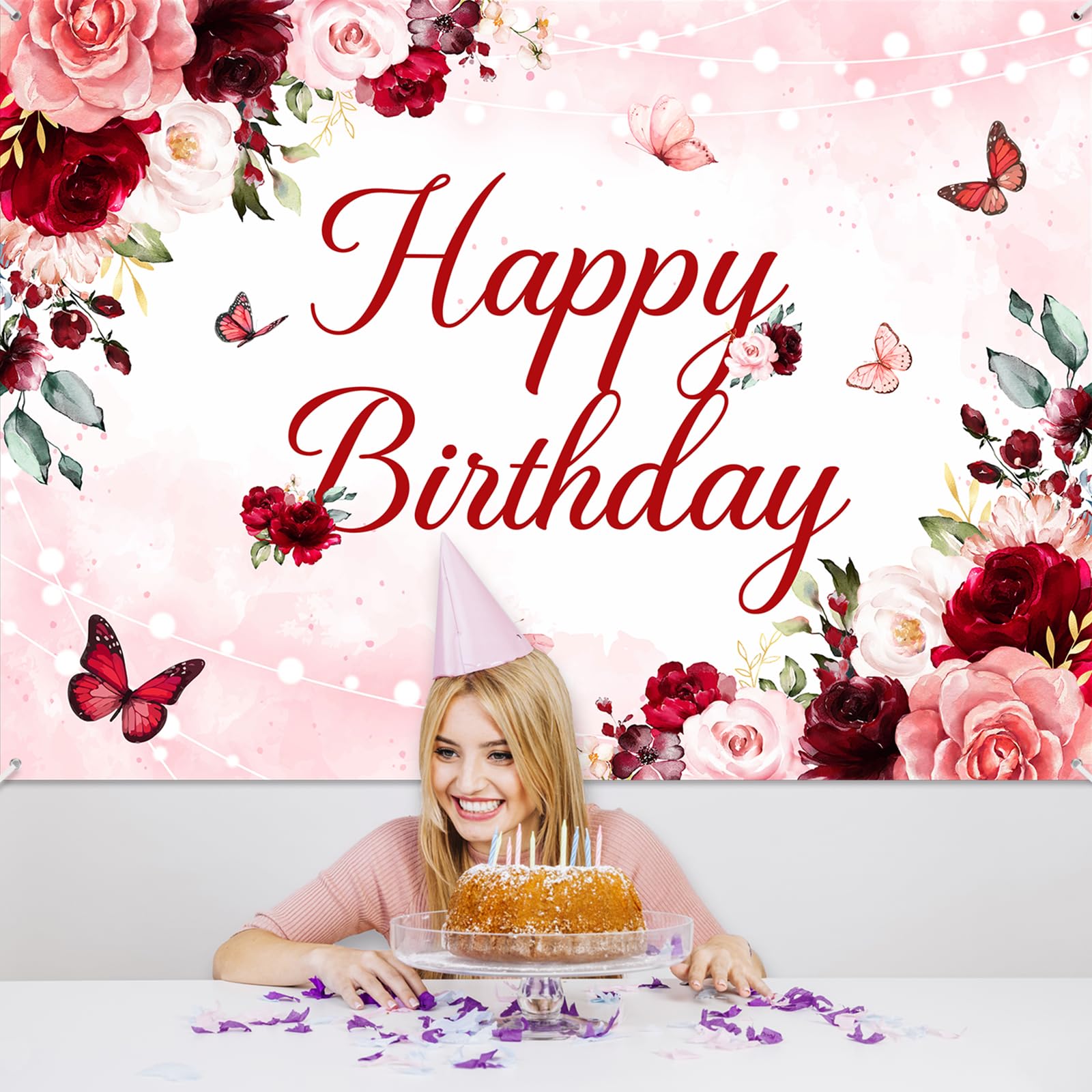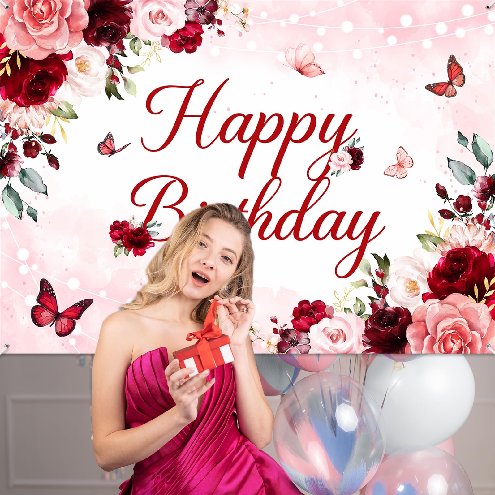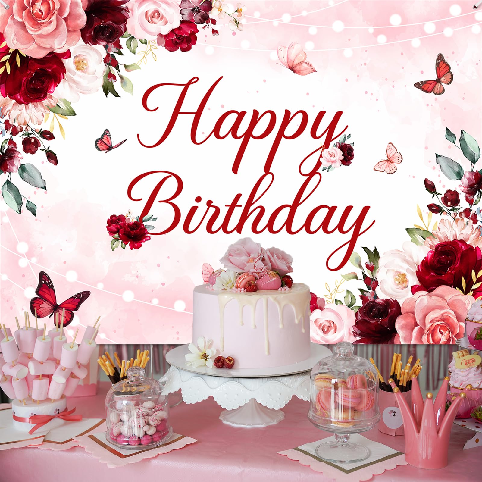 PHOTO BACKDROP OR DECOR: 70.8 '' (Width) x 43.3 '' (Height), the pink and red burgundy birthday banner makes a vivid and festive backdrop for photos or a stunning decorative accent for indoor and outdoor parties