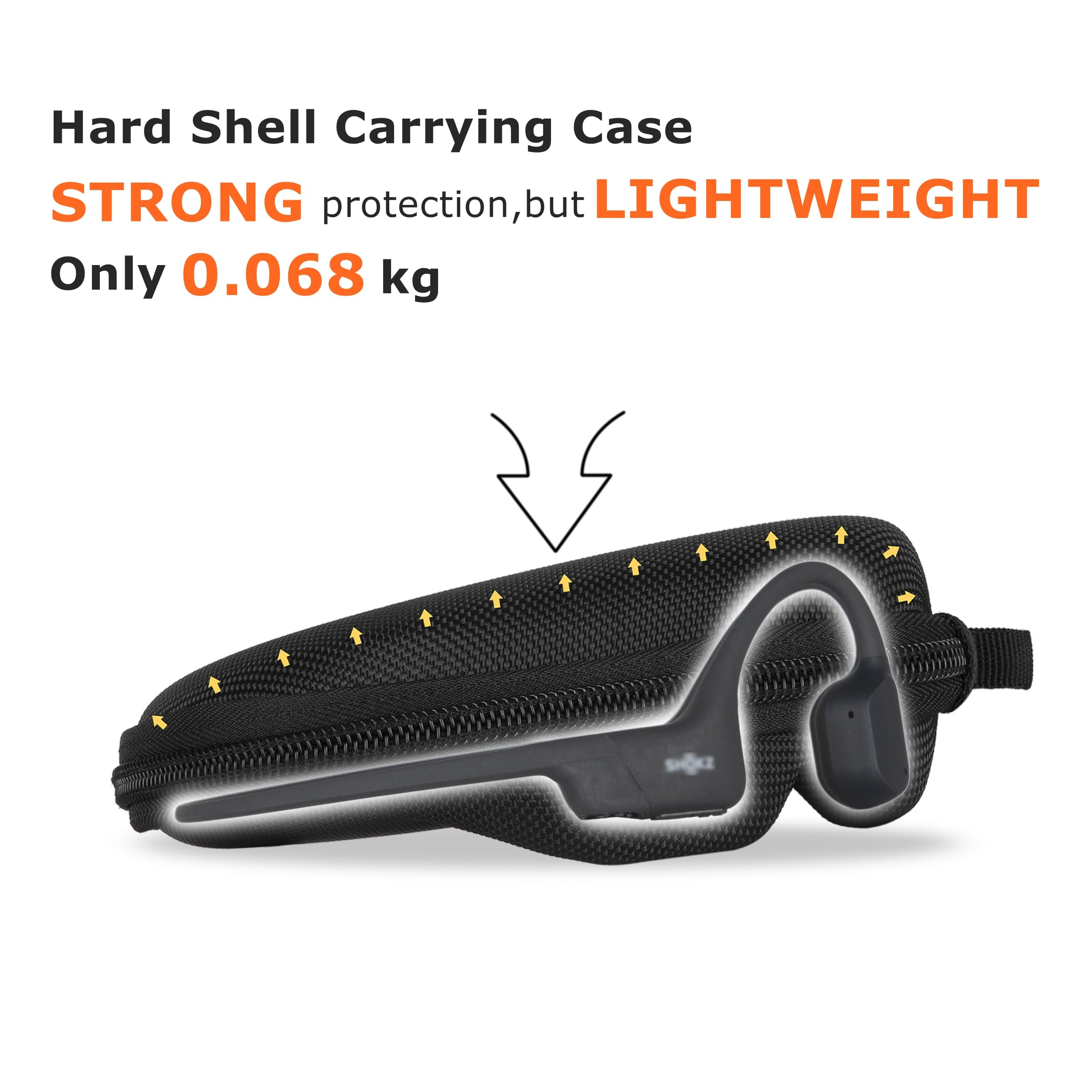 WITHOUT MISSING : Bone conduction headphone carrying case special designed comes with a inside mesh bag. Perfect for storing the charging cable and any other small accessories, no worries for missing the exclusive charger