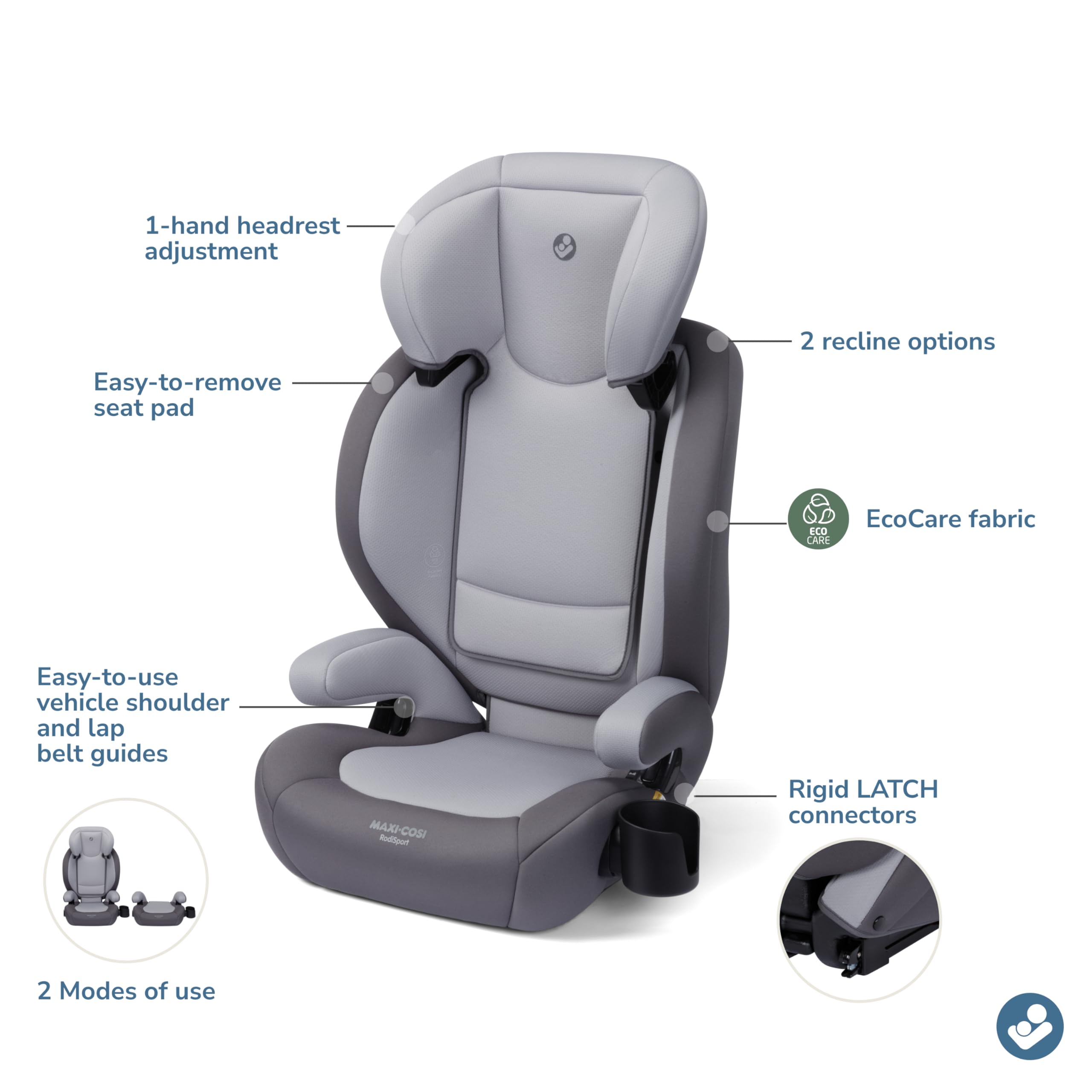 CONVERT FROM CAR SEAT TO BACKLESS BOOSTER Celebrate the transition from toddler stage to big kid stage when your child can securely buckle up on their own. The RodiSport Booster Car Seat is a 2-in-1 favorite that fits kddos from 40–100 lbs. and 43.4"–57".