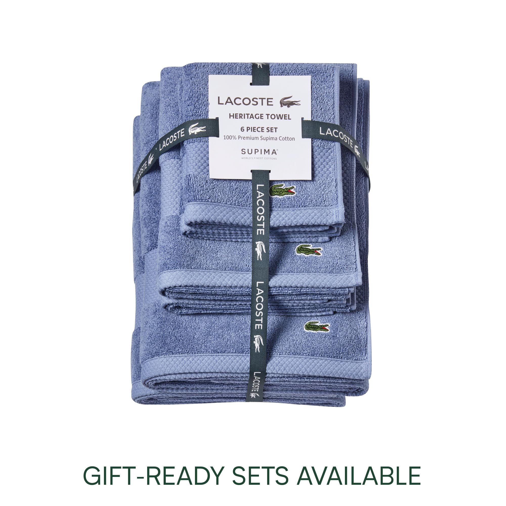 PREMIUM SUPIMA COTTON - Lacoste Heritage Towels are made from 100% grown-in-America Supima cotton loops on 100% cotton ground. That means that every towel is soft to the touch, retains its color, and stays strong longer than other towels.