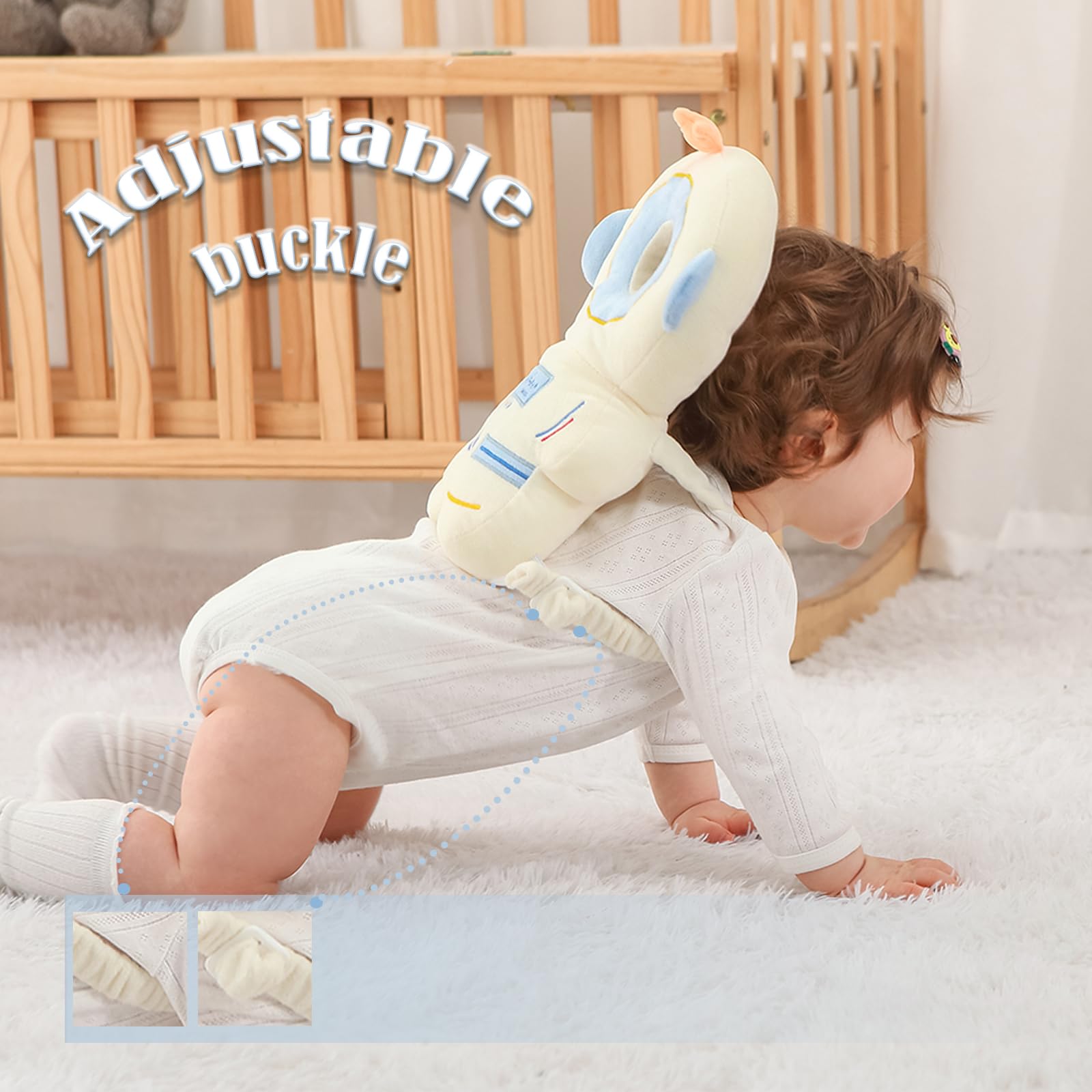 This head protector backpack for baby cushions falls, safeguarding delicate heads. Perfect for active babies with a soft, padded design that offers comfort and protection.