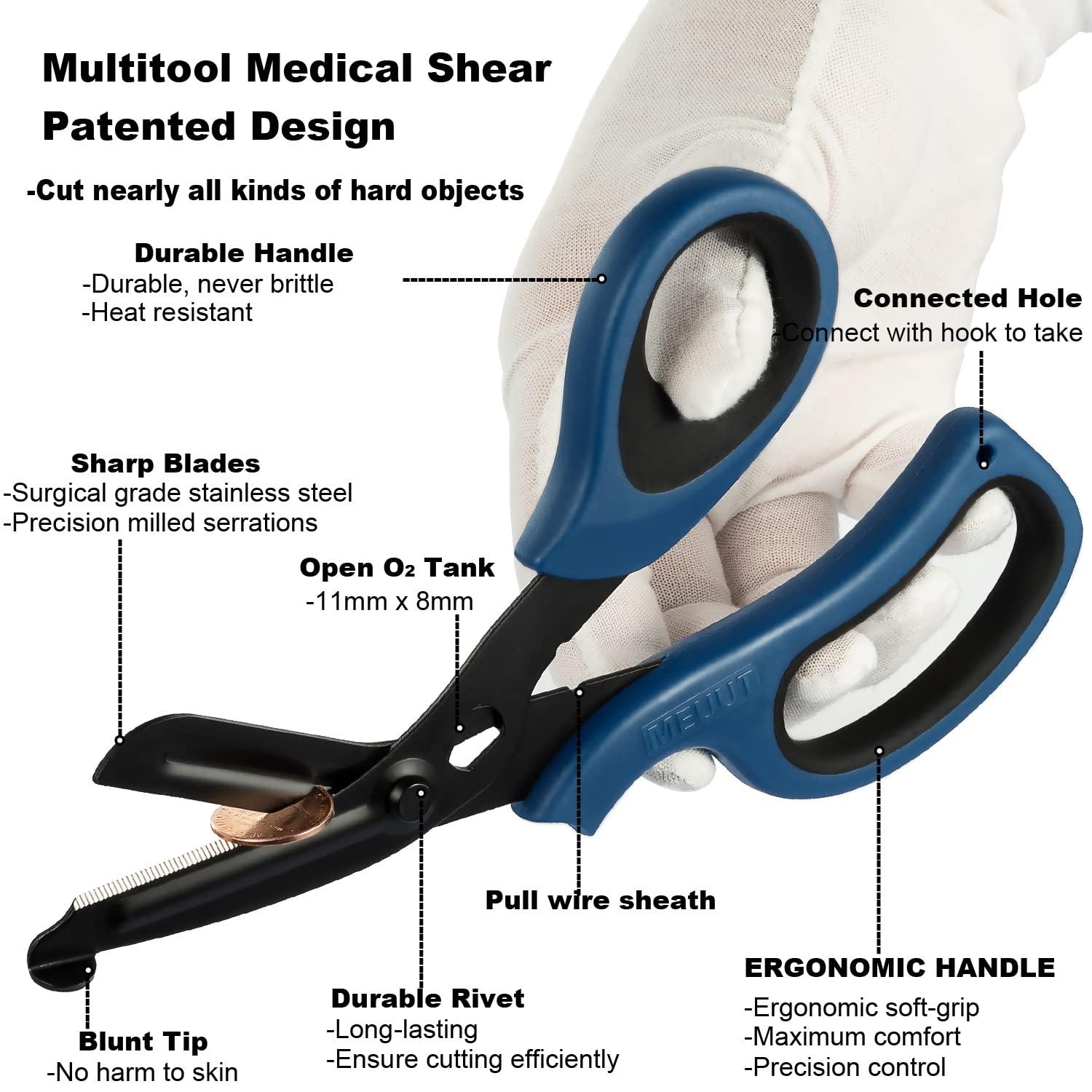 【HIGH QUILITY】: 100000 times cutting test passed, heavy duty trauma shears, made of surgical grade stainless steel 440 blades with milled serrations, fluoride-coated non-stick surface with lightweight and soft grip handle.