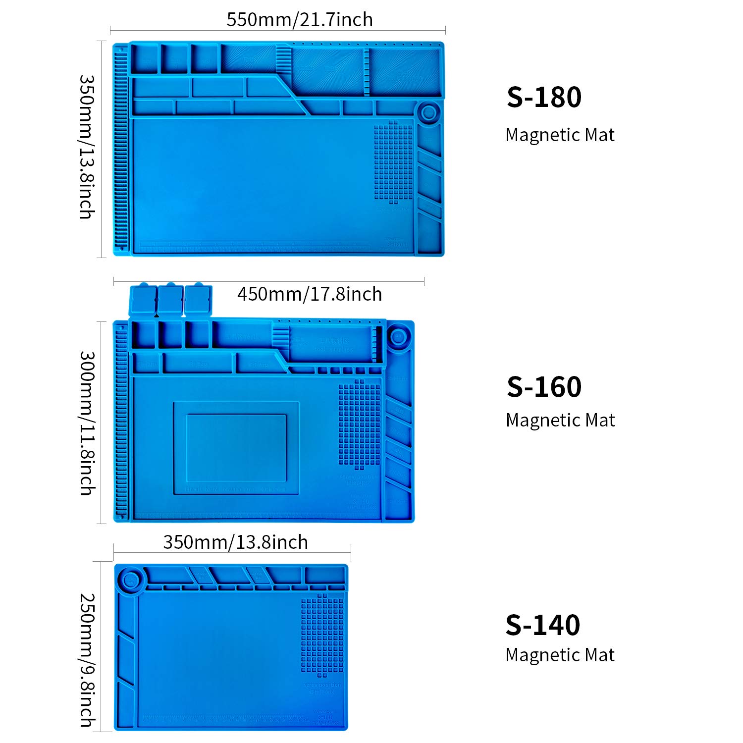 【Multi-Function】: Large soldering mat built-in scale ruler (0 ~38cm/0~15inches), 124 screws position and 4 pcs magnetic parts areas, 18 notches and 49 spare unit to classify precision parts, which improve your work efficiency and make maintenance platform more clean and tidy