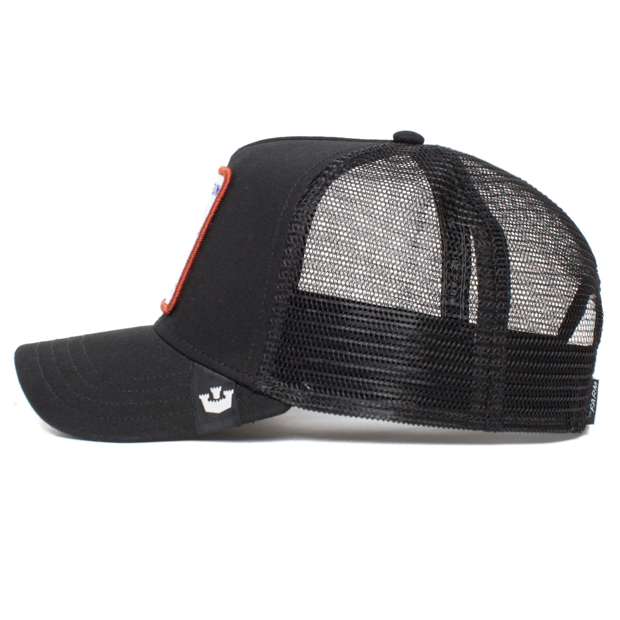 Goorin Bros' signature 5-panel trucker hat. Designed with mesh back panels and an adjustable snapback closure with a flag label for The Farm.