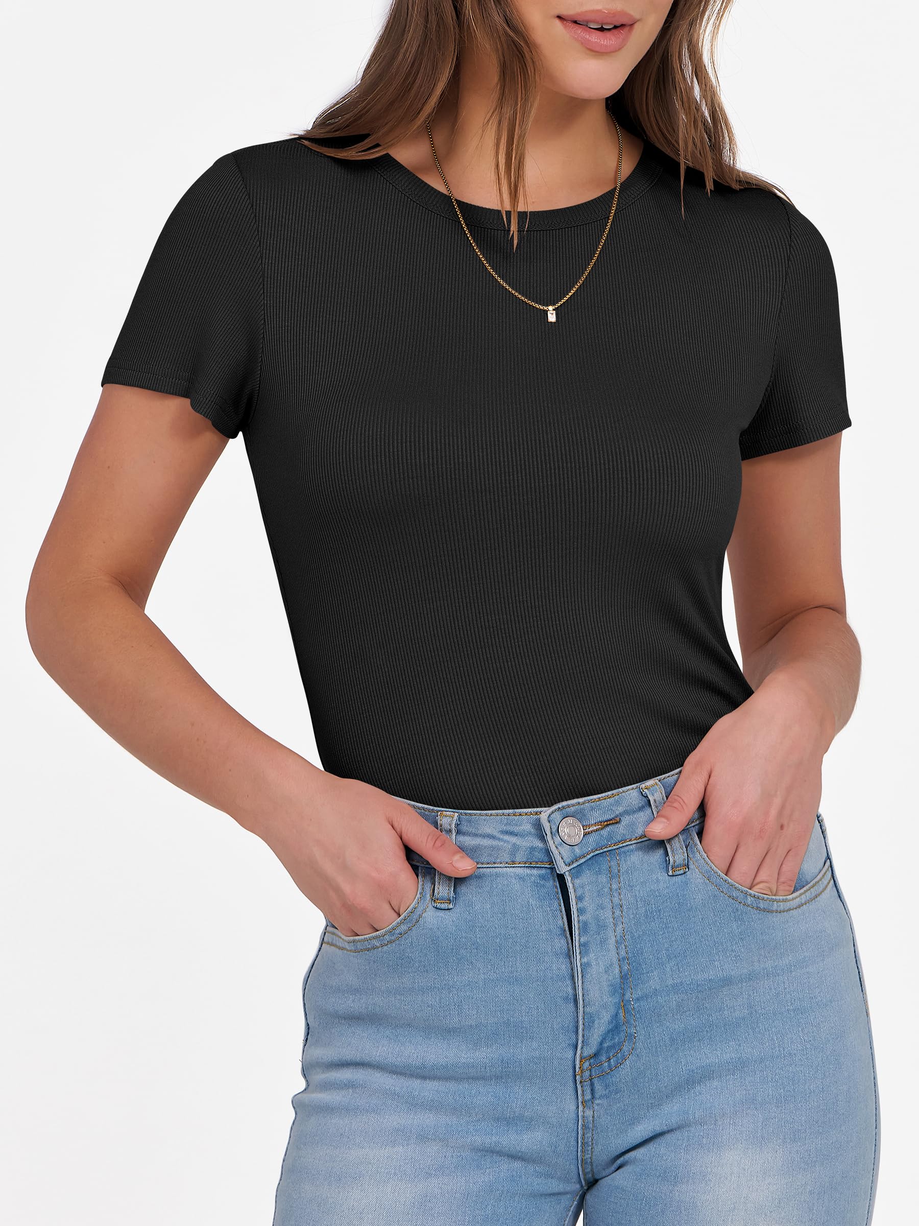 Features - Get summer-ready with our comfy and soft knitted fabric, perfect for all occasions. Our short sleeve crew neck design is versatile - wear it to school, the gym, the beach, or casual daily wear. The slim fit highlights your perfect figure, making you feel confident and stylish wherever you go. Comfortable, lightweight, and oh-so-flattering, our basic summer slim tee is an essential addition to your wardrobe.