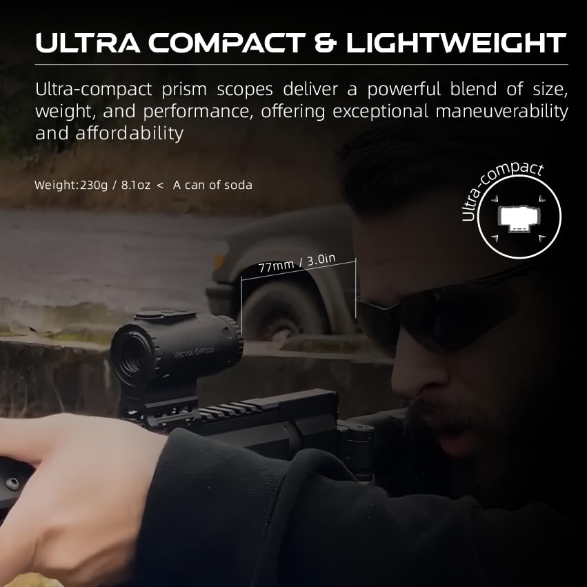 【Ultra Compact & Reliable】:With a length of just 75mm (3.0"), this compact optic is designed for .223 5.56x45mm cartridges and built to endure extreme vibrations and harsh weather. It's durable enough for high-speed, high-impact environments