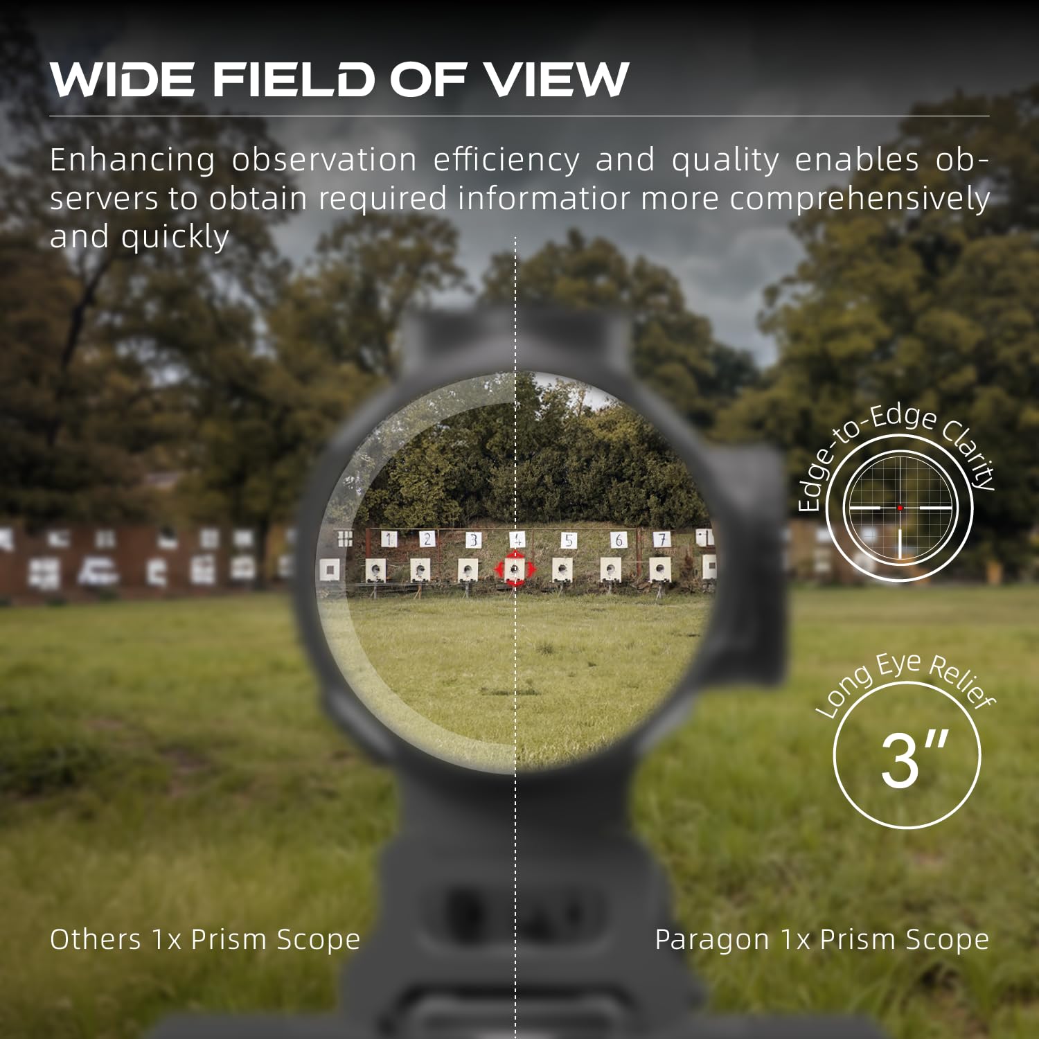 【Spacious Eye Box】: Featuring a large eye box for quick target acquisition, this scope ensures fast, responsive shots without the hindrance often seen in low-quality optics